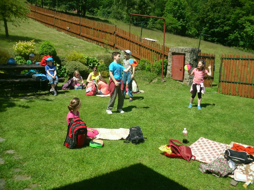 Menší pauzičku jsme měli na chatě paní učitelky. Děti se osvěžily vodou, mohly se proběhnout po trávě, postavit si hrad z písku nebo se pohoupat na houpačce. Pak jsme pokračovali až na Ondřejník, kde jsme se kochali nádherným výhledem na okolí, občerstvili se a odpočinuli si, abychom načerpali síly na cestu zpět. Počasí nám přálo, celý den svítilo sluníčko a všichni jsme si výlet moc užili. Je třeba také pochválit děti, které po celou dobu výletu byly hodné.