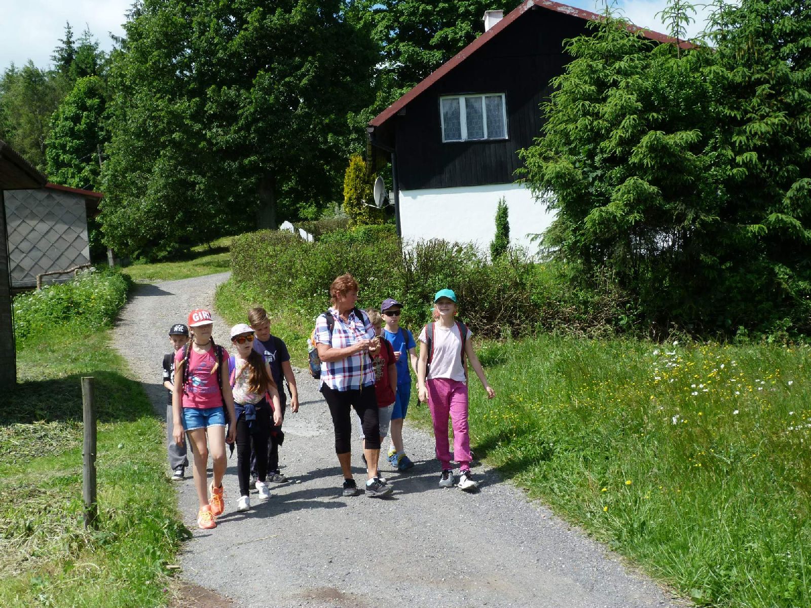 Cesta vlakem byla velmi pohodlná, seděli jsme v horním patře, měli jsme krásný výhled na míjející se krajinu. Ve vlaku všichni vybalili svačinky, sladkosti a nabírali síly na výšlap na vrchol Girová. Cíl byl vzdálen 4,5 km a přesto, že první třetina trasy byla poměrně náročná, všichni jsme na vrchol úspěšně a bez kňourání dorazili. Cesta nám rychle ubíhala. Počasí nám přálo, sluníčko svítilo, obdivovali jsme krásně rozkvetlé horské louky, poznávali luční byliny, o kterých jsme se učili v přírodovědě, krmili jsme pasoucí se ovečky.