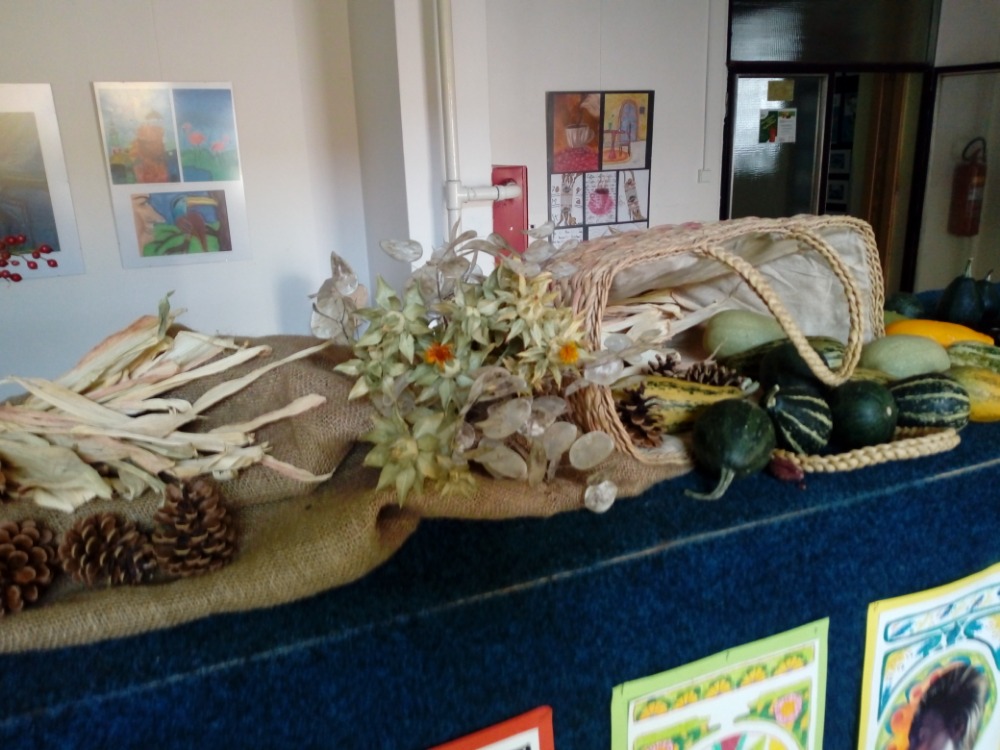 Podzim nám přináší dary v podobě plodů, semínek, úrody. A tak naši malou výstavku mohou oživit nejen okrasné dýně, ale i šípky, kaštany, bukvice a spousta květin k sušení – statice, levandule, limonky, řebříček, mochyně, slaměnky, kardi, modrý závoj a jiné krásné sušiny, které nám mohou dělat radost po celou zimu.