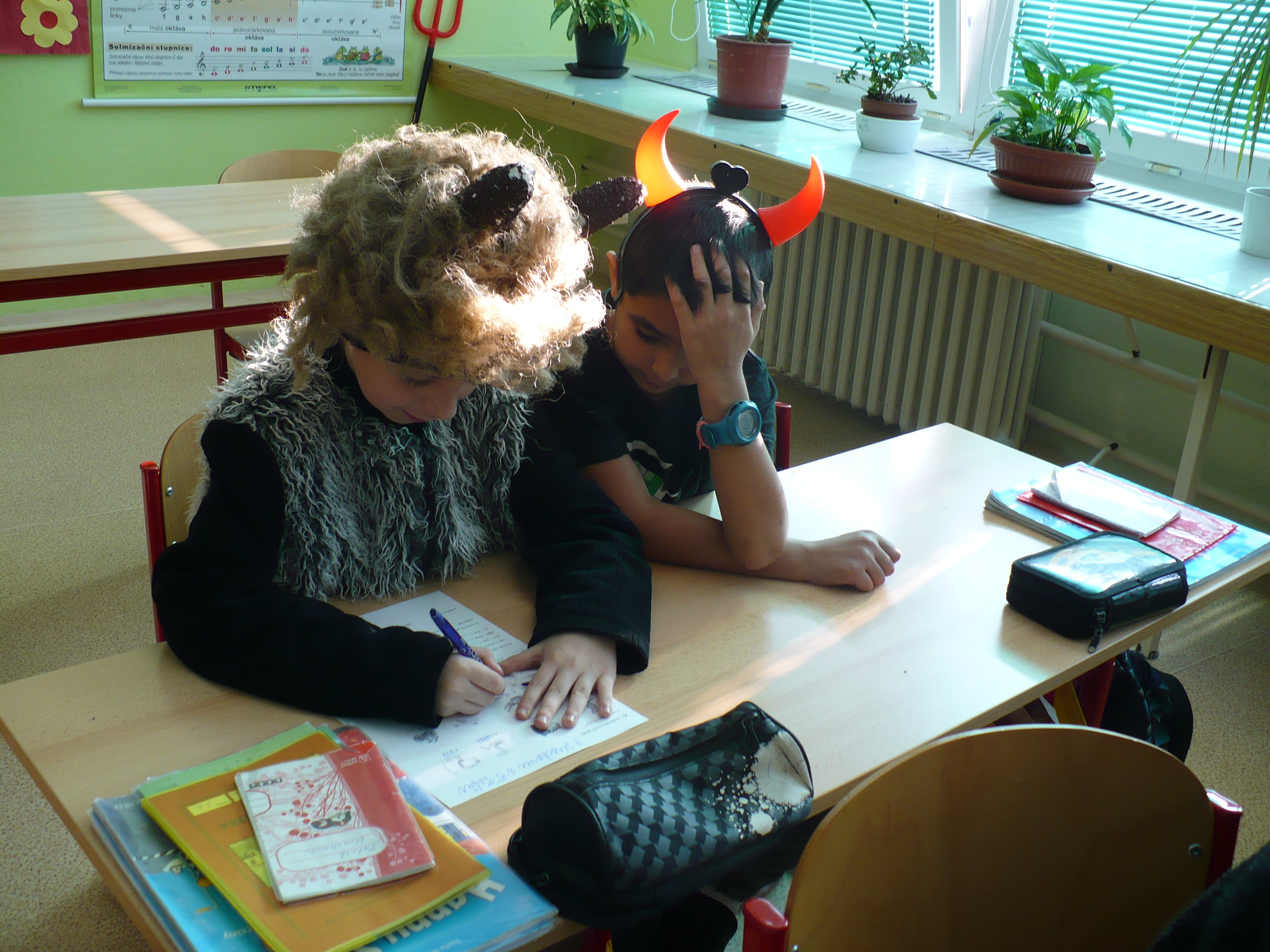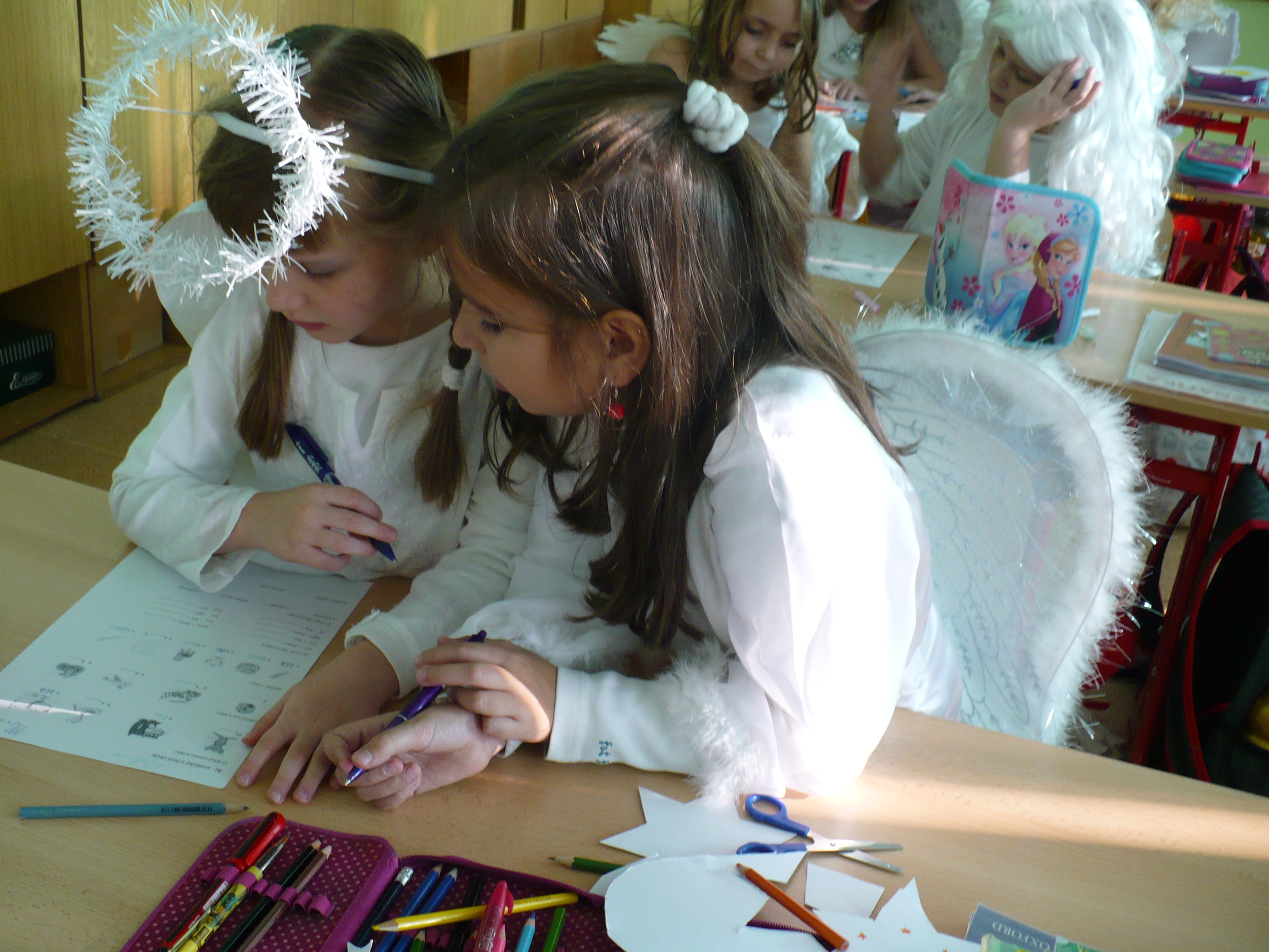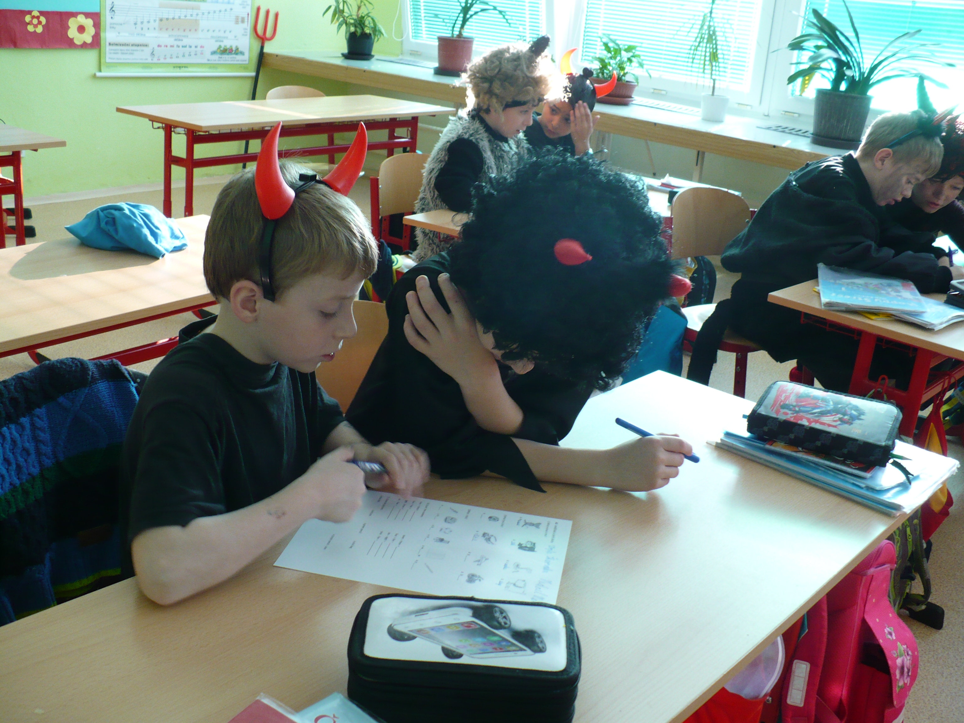 3.12.2017V pátek 1. 12. 2017 se konal ve 3.B projektový den s čerty a anděly. Žáci si doma připravili kostýmy – děvčata andělské a chlapci čertovské. Někteří v nich už přišli, jiní se strojili ve třídě.