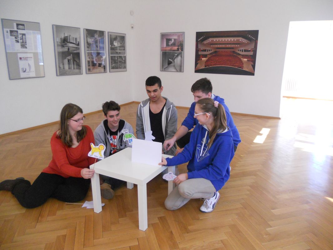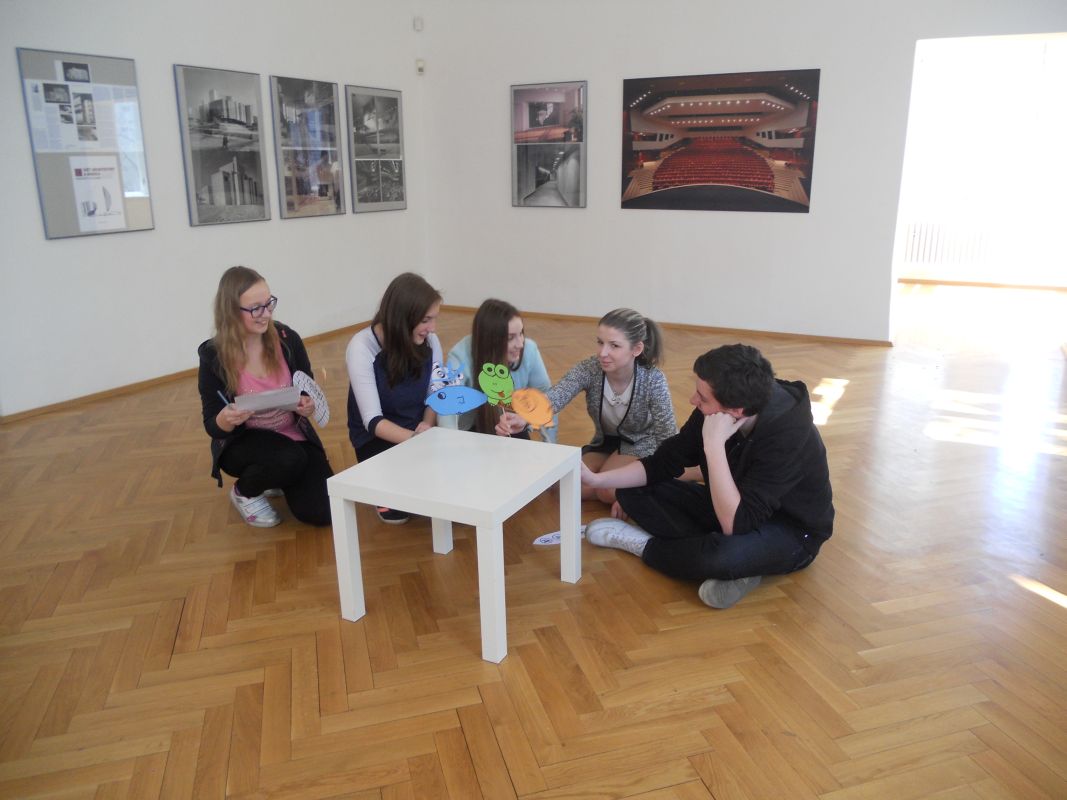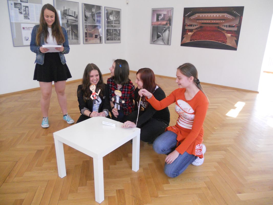 24.4.2015Centrum kultury a vzdělávání v Moravské Ostravě nabízí školám i veřejnosti galerijní animace k probíhajícím výstavám. Jedná se o cyklus doprovodných programů, tentokrát o architektuře z dílny Ivo Klimeše. Porovnávali jsme moderní budovu mosteckého divadla s ostravským Divadlem Jiřího Myrona, Divadlo Antonína Dvořáka, nerealizovanou budovu opery v Ostravě, loutkové divadlo a řadu jiných staveb, ať již realizovaných nebo v plánech. Přiměřeným způsobem se tak žáci zamysleli nad architekturou, ale také nad divadlem. Jejich úkolem bylo vymyslet komediální představení, pro které si však museli vytvořit loutky, a poté jej zahrát ostatním. Úkolu se zhostili všichni na výbornou. Námětově se dotkli mnoha oblastí života – multikultury, zdravé výživy, objevování vesmíru, etikety, drog, ale i mimoňů. Byla to skvělá příležitost zpříjemnit žákům výuku a vychutnat si poutavý program zkušených lektorů.