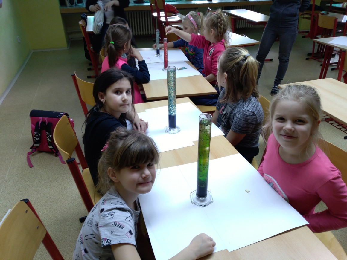 12.5.2019Již několik měsíců funguje na naší škole v prvních a třetích třídách oblíbený badatelský klub, kde se děti z naší školy snaží poznávat svět. Různé fyzikální nebo chemické pokusy spojené s aktivním pozorováním přírody v okolí školy jsou určitě přínosem pro školní výuku prvouky, přírodovědy či přírodopisu pro děti z naší školy. Pro děti prvních a třetích tříd je asi nejzajímavější pro ně neznámá fyzika a chemie se kterou se setkají až za několik let. Pokusy se solí, vodou, chemickými látkami ,včetně potravinářského barviva, oleje či sladkostí se dětem asi vštípí do paměti jako malé zázraky. Příroda v okolí školy, ale také naskýtá mnoho nových poznatků, zvlášť když je děti pozorují dalekohledy nebo pod mikroskopem.Také zookoutek naší školy poskytuje dětem nepřeberné zkušenosti s kontaktem se živými zvířaty a starostmi o ně. Děti se těší, že snad další rok budou badatelské kluby pokračovat.