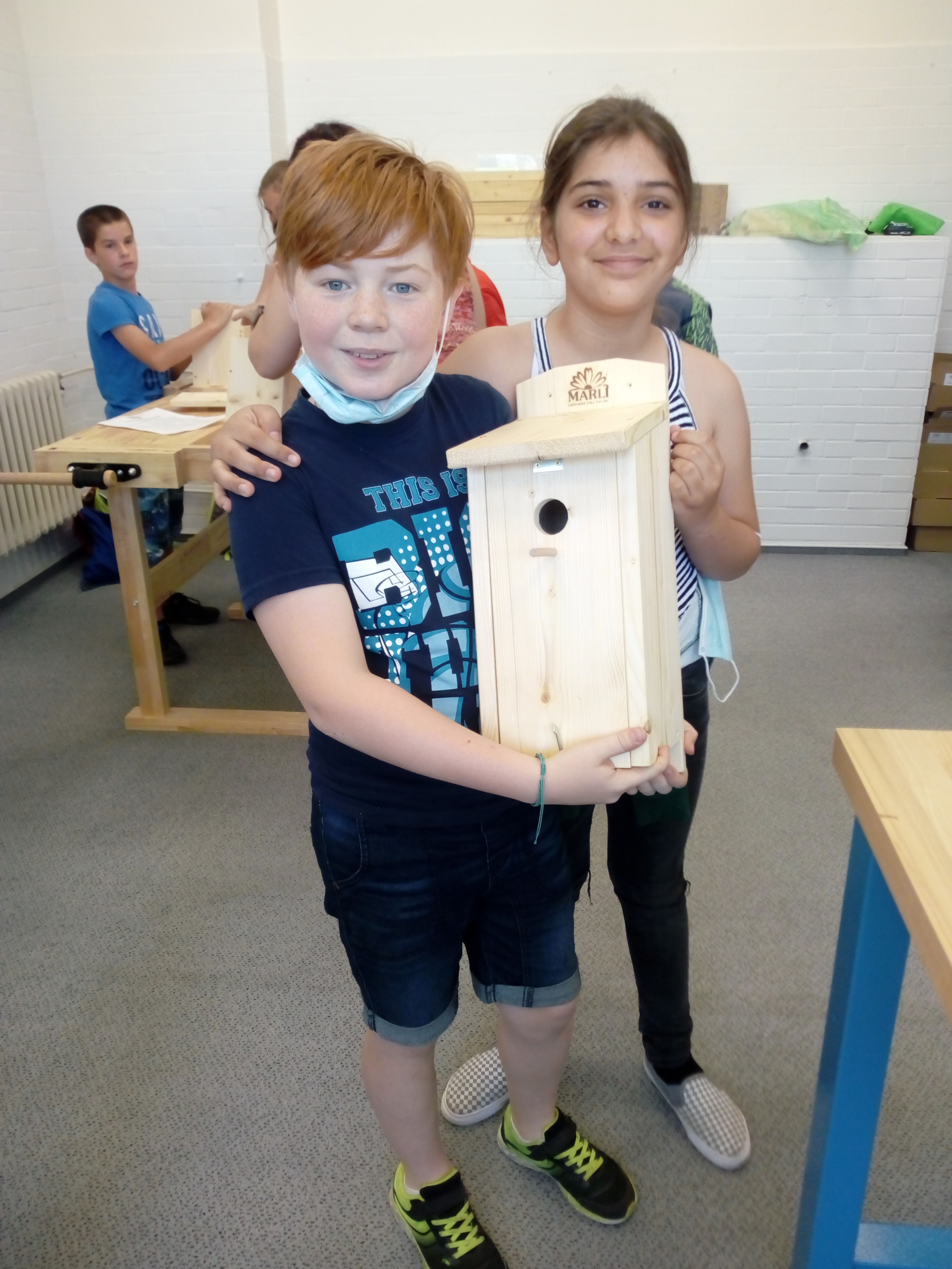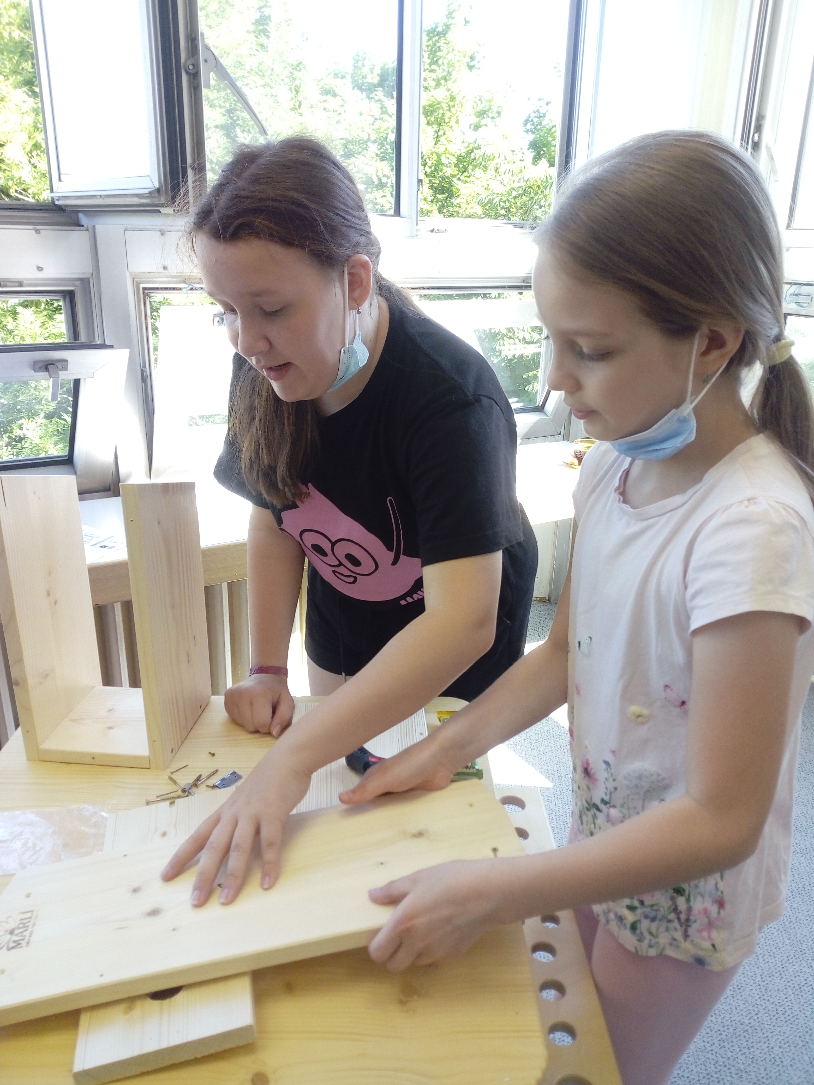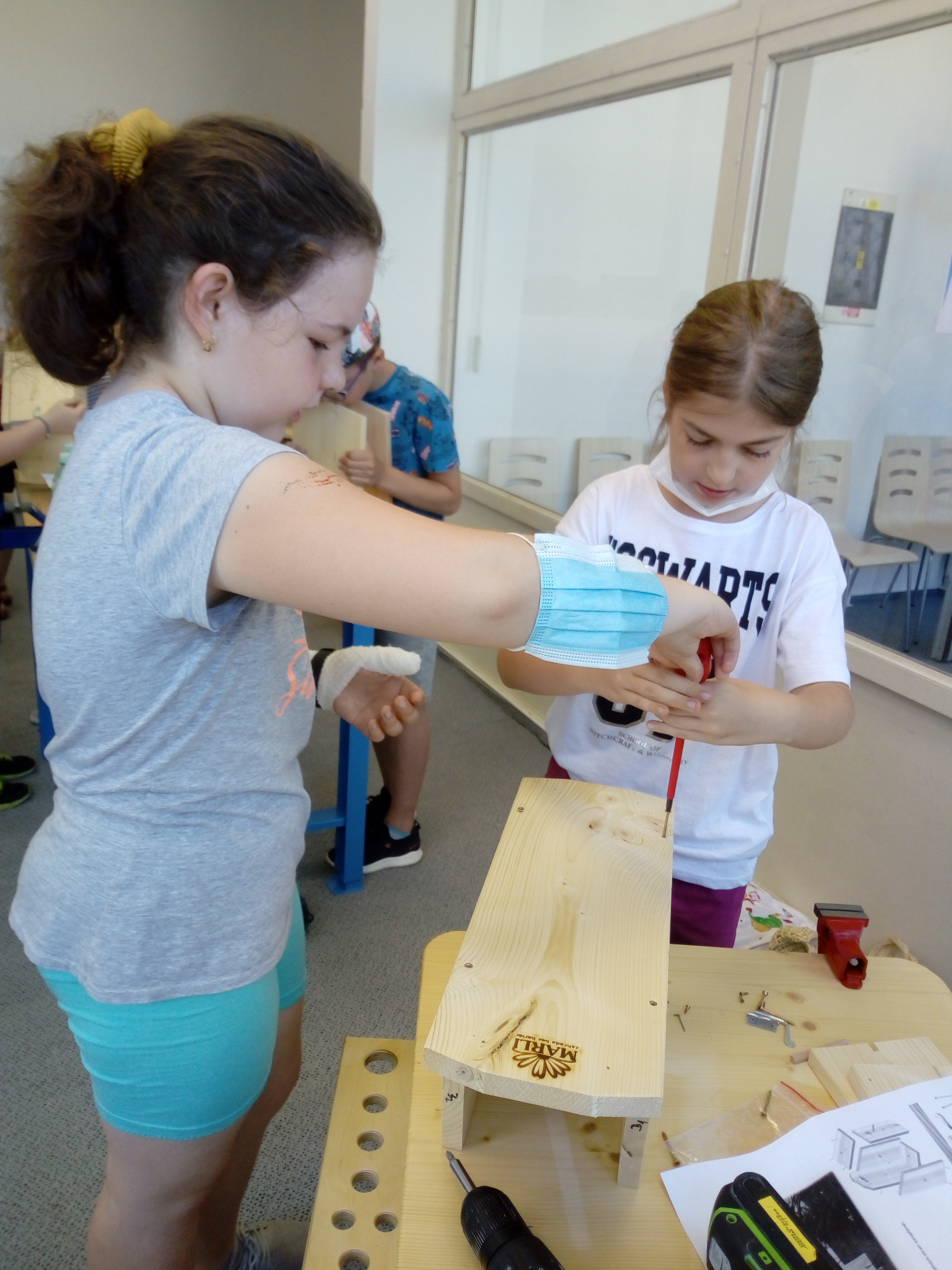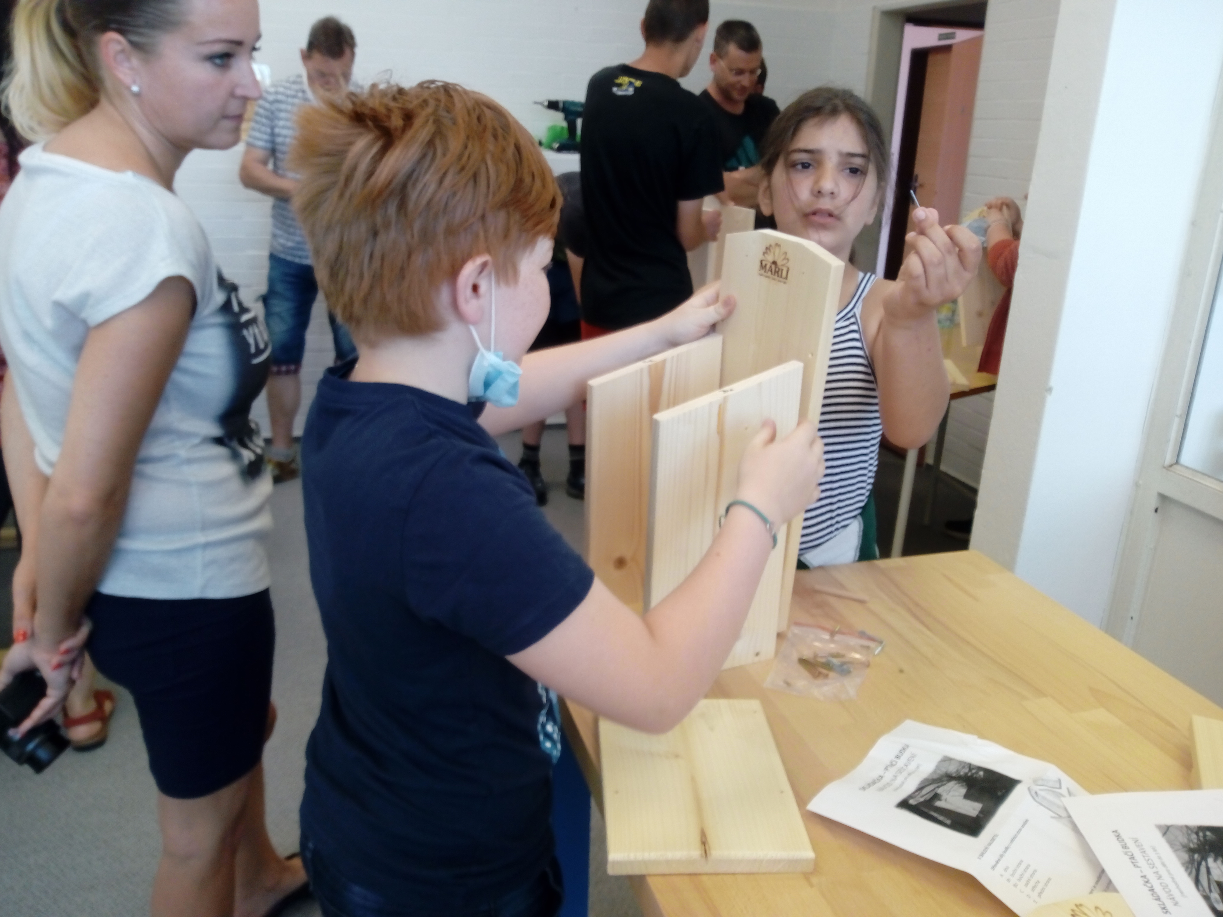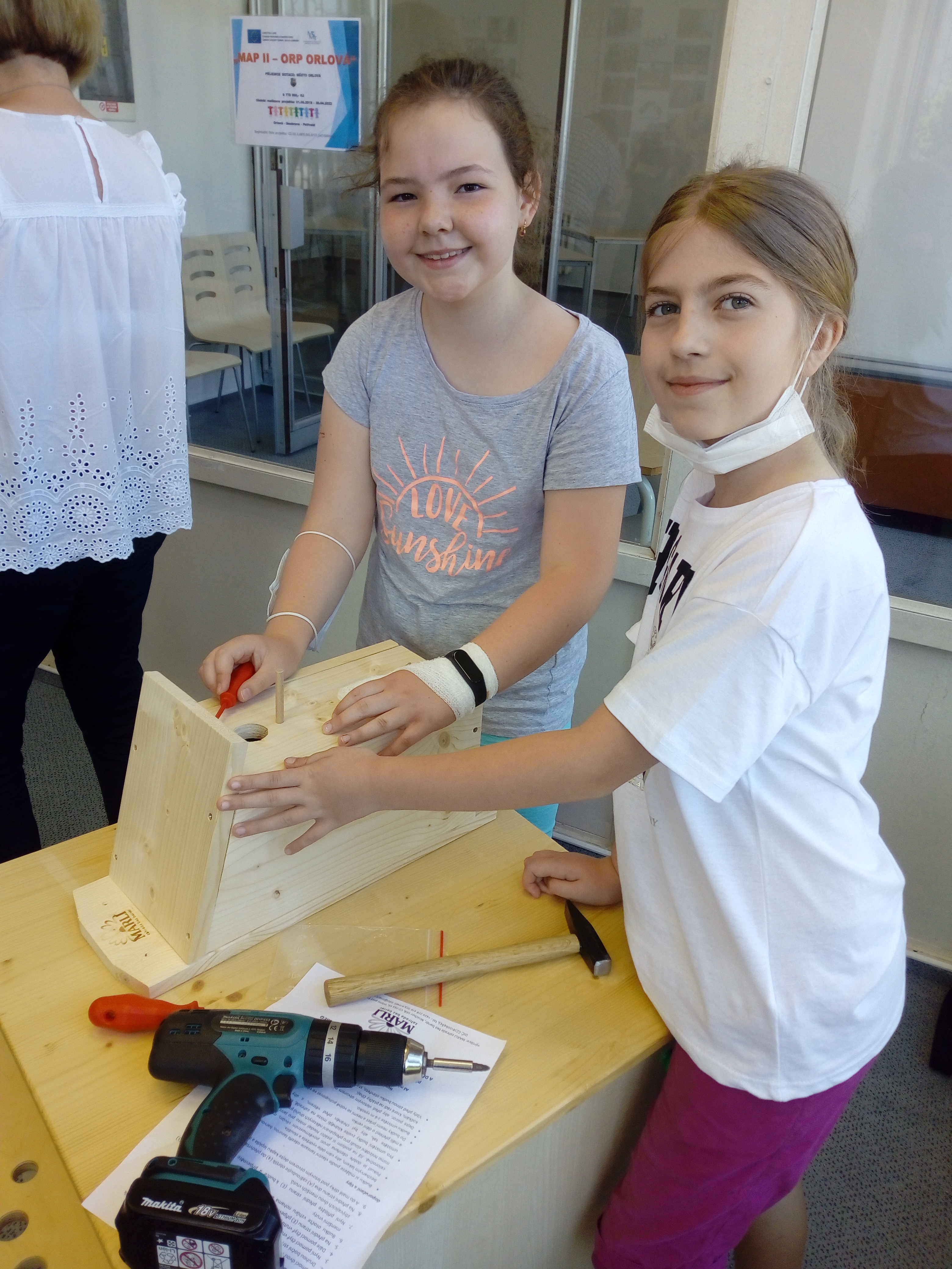 Děti měly za úkol ve dvojicích smontovat ptačí budku z předem nařezaných a připravených dřevěných dílů. Celkem skládaly 18 budek pod vedením členů 5. pracovní skupiny MAP II.