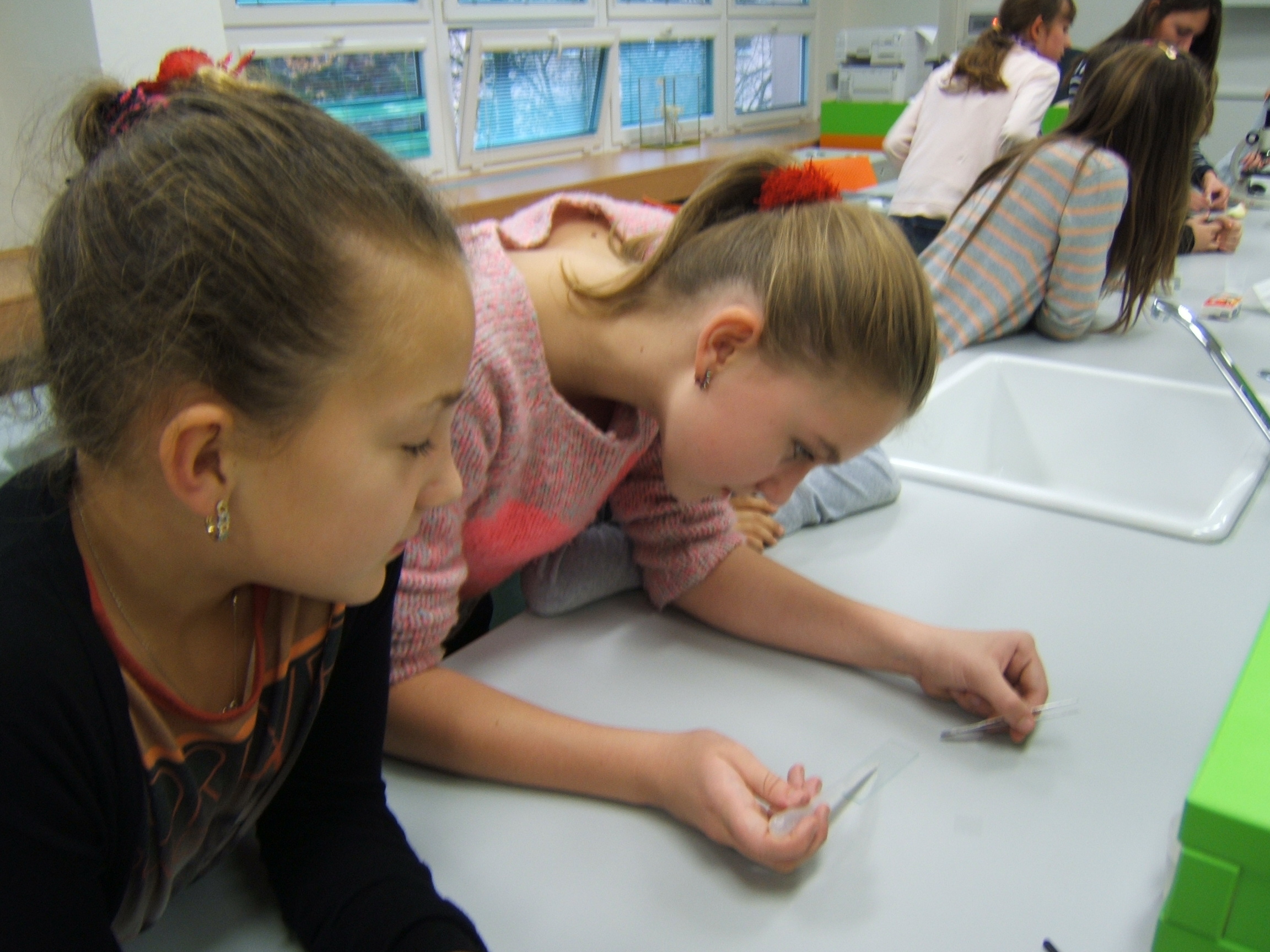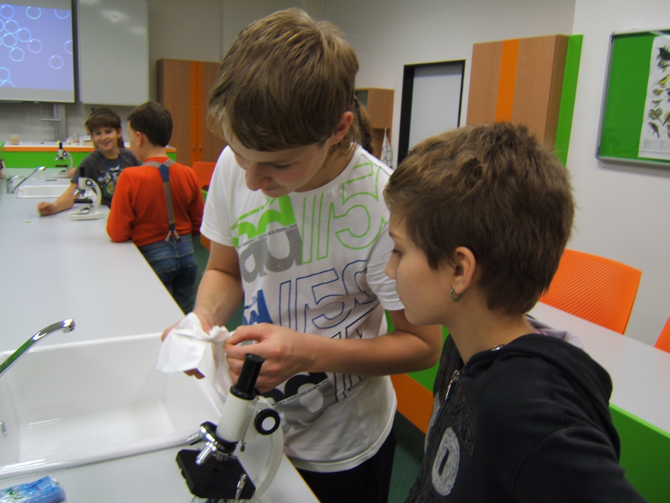 V zimních měsících jsme vyráběli herbář listů a poznávali jsme druhy dřevin a bylin blízkého okolí. Také se nám líbila práce v naší nové učebně přírodopisu, kde jsme měli možnost pozorovat život pod mikroskopy a pracovat s interaktivní tabulí pod vedením starších žáků přírodovědného kroužku p. uč. Dumbrovské.