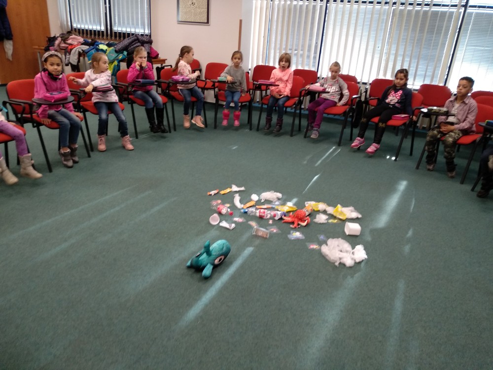 10.11.2019V pátek 8. 11. 2019 se třída 1. B vydala na další domluvenou schůzku v Městské knihovně Orlová. Tentokrát si paní knihovnice pro nás připravila velmi zajímavou interaktivní besedu. Poutavě četla knihu Gerda, ve které je vylíčený příběh velryby, její rodiny a jejich přátel. Děti se aktivně zapojily do společné četby – pomáhaly čistit moře, pluly s velrybou jeskyní