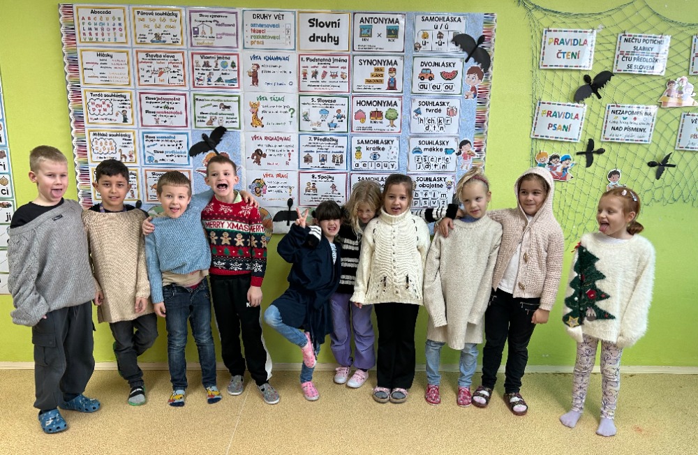 Ve středu 19. 11. se na naší škole uskutečnil další den z celostátního projektu Hrdá škola, Den ošklivých svetrů. Děti přišly do školy v co nejošklivějším svetru doplněný nevkusnými doplňky. Originalitě se meze nekladly. Posuďte sami.