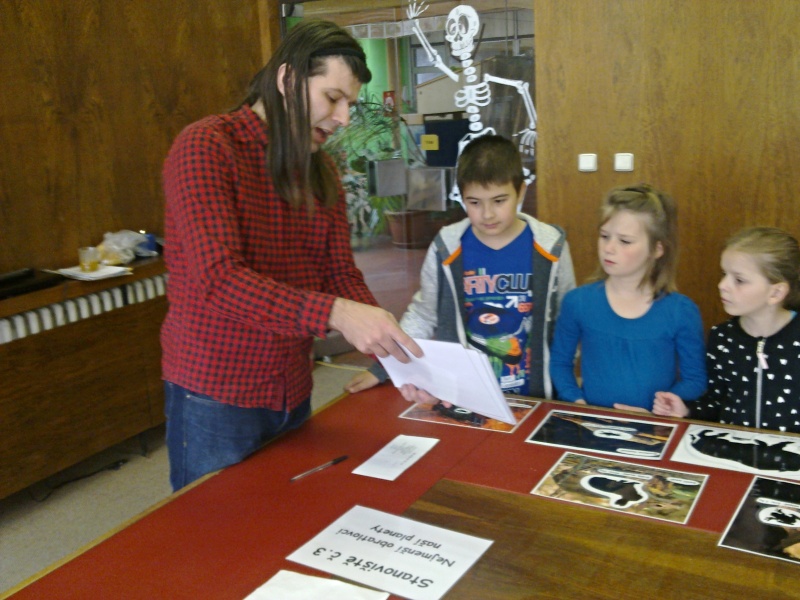 Druhou částí programu nás provedl vedoucí přírodovědného oddělení Bc. Adam Bura, který nám řekl mnohé o miniaturách obratlovců, kteří žijí či žili na naší planetě. Řadu z nich jsme si sami mohli prohlédnout nebo dokonce vzít do svých rukou, což se nám líbilo nejvíce.