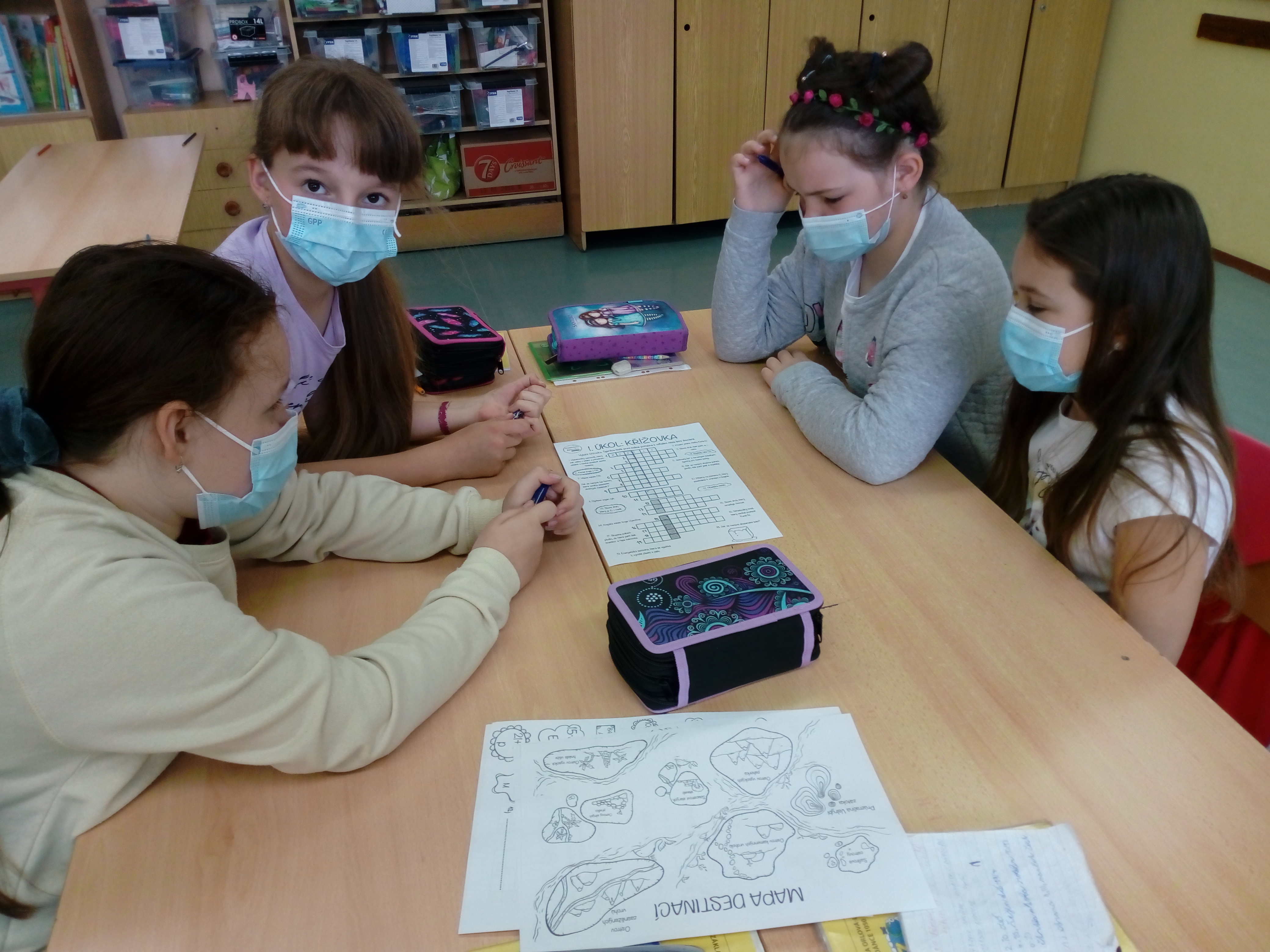 Následně psaly šifrované zprávy svým spolužákům. Potom si také zatancovaly u „židličkového tance“. A protože bylo hezké počasí, nechyběla ani procházka venku se zastávkou na zmrzlinu. Dnešní dopoledne si děti moc užily a už teď se určitě těší na další podobně strávený den ve škole.