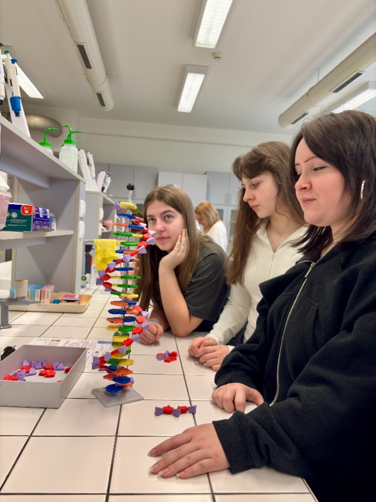 Žáci si v laboratořích vyzkoušeli práci skutečných vědců a získali hlubší vhled do tajů genetiky. Během dopoledne se jim podařilo sestavit trojrozměrný model DNA, aby si lépe představili její složitou strukturu, úspěšně izolovat vlastní DNA – a to přímo z obyčejného banánu. Naučili se spoustu nových a zajímavých informací o DNA, dědičnosti a moderních biotechnologiích. Workshop byl nejen poučný, ale také plný praktických ukázek a experimentů. Byl to pro žáky cenný zážitek, který rozšířil jejich obzory v oblasti přírodních věd.