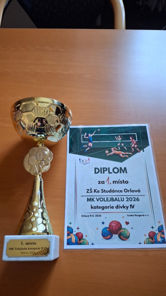 10.4.2026Městské kolo ve volejbale starších děvčat proběhlo ve sportovní hale GOA Orlová. Z pěti zúčastněných základních škol, včetně GOA, nejprve děvčata ze Studánky při rozehrávání působila nenápadně mezi daleko vyššími volejbalistkami z jiných škol. Není se čemu divit, vždyť tým tvořila jen dvě děvčata z 9. tříd, jedna osmačka a pak už jen sedmačky, které však volejbal umí. To předvedly hned v prvních dvou zápasech, kde vždy zvítězily bez ztráty setu. Sebevědomí jim stoupalo zápas od zápasu. Pak následoval vítězný zápas s hráčkami z Dvořáčka, kde volejbal má tradici, a pak už stačilo porazit jen GOA. Zápas s GOA nadchl všechny přítomné, byl to vyrovnaný nejsledovanější zápas celého turnaje, dlouhé výměny, smeče, bloky a drtivá podání na obou stranách. Nakonec vše rozhodla kapitánka Natálie Sprušanská z 9.A , nejlepší hráčka turnaje, a to sérii nechytatelných podání ve třetím setu. Radost děvčat při přebírání poháru a diplomu byla nepopsatelná. V turnaji starších chlapců, do nějž se přihlásily čtyři školy, zvítězil tým volejbalistů z GOA. Více napoví fotografie.