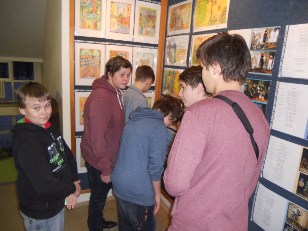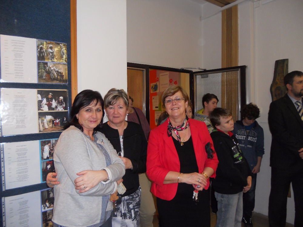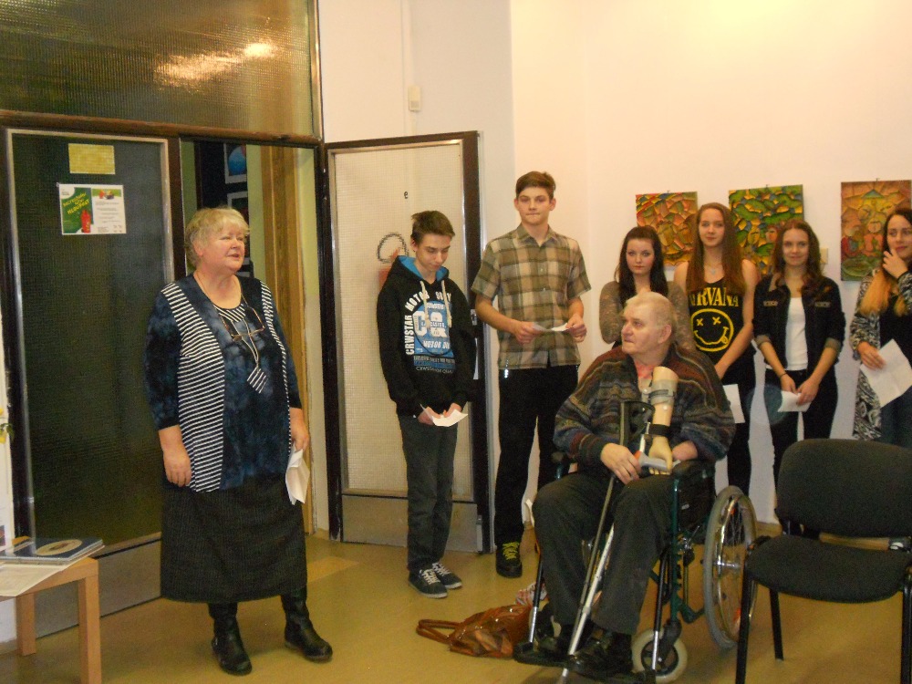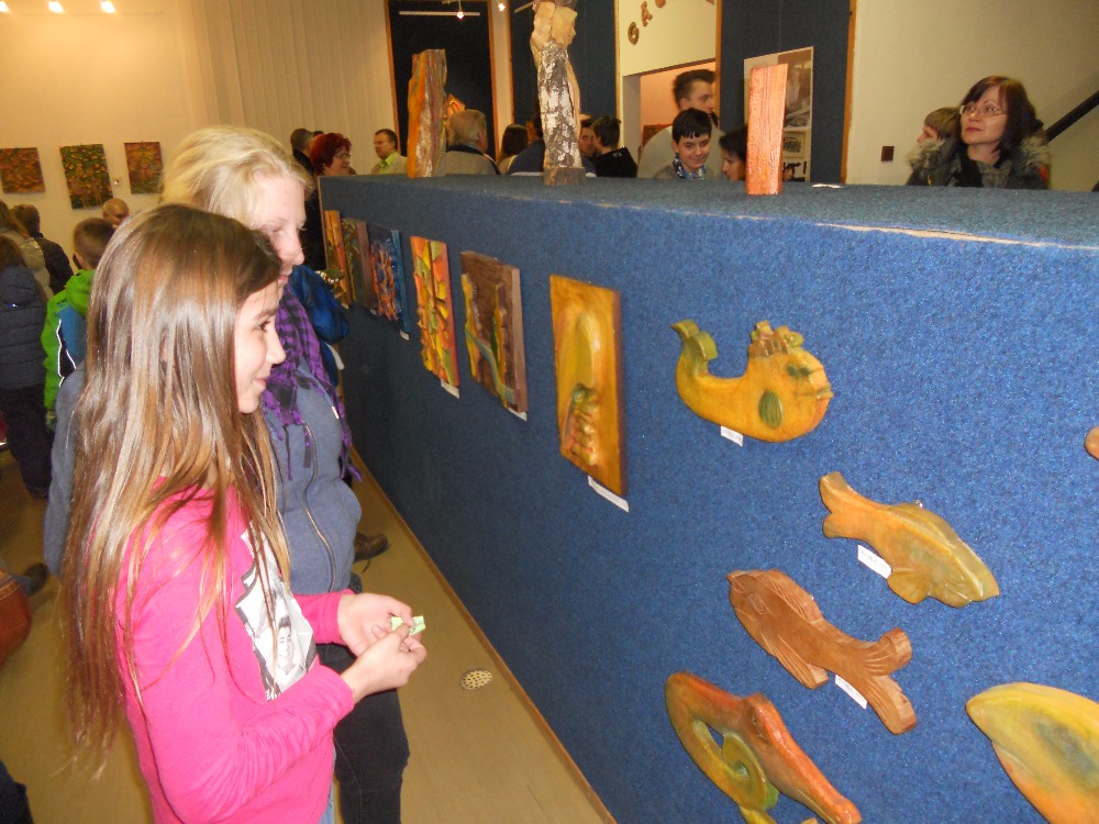 21.1.2016Slavnostní vernisáží výstavy prací karvinského řezbáře, básníka a spisovatele Stanislava Filipa jsme v měsíci lednu umožnili našim žákům, ale i orlovské veřejnosti nahlédnout pod pokličku tvorbě pana Filipa. Široký záběr zájmů tohoto člověka musí potěšit snad každého. Na vernisáži zazněly úsměvné verše básníka, rozveselily nás příběhy z úst autorovy partnerky paní Aleny Hlouškové. V množství vystavených dřevořezeb se člověk ani nedokáže rozhodnout, co jeho oku lahodí více. Použitím barev na řezbách jim autor vtiskl jinou dimenzi a kouzelnou působivost. Výstava potrvá do konce března a je prodejní. Jste srdečně zváni!