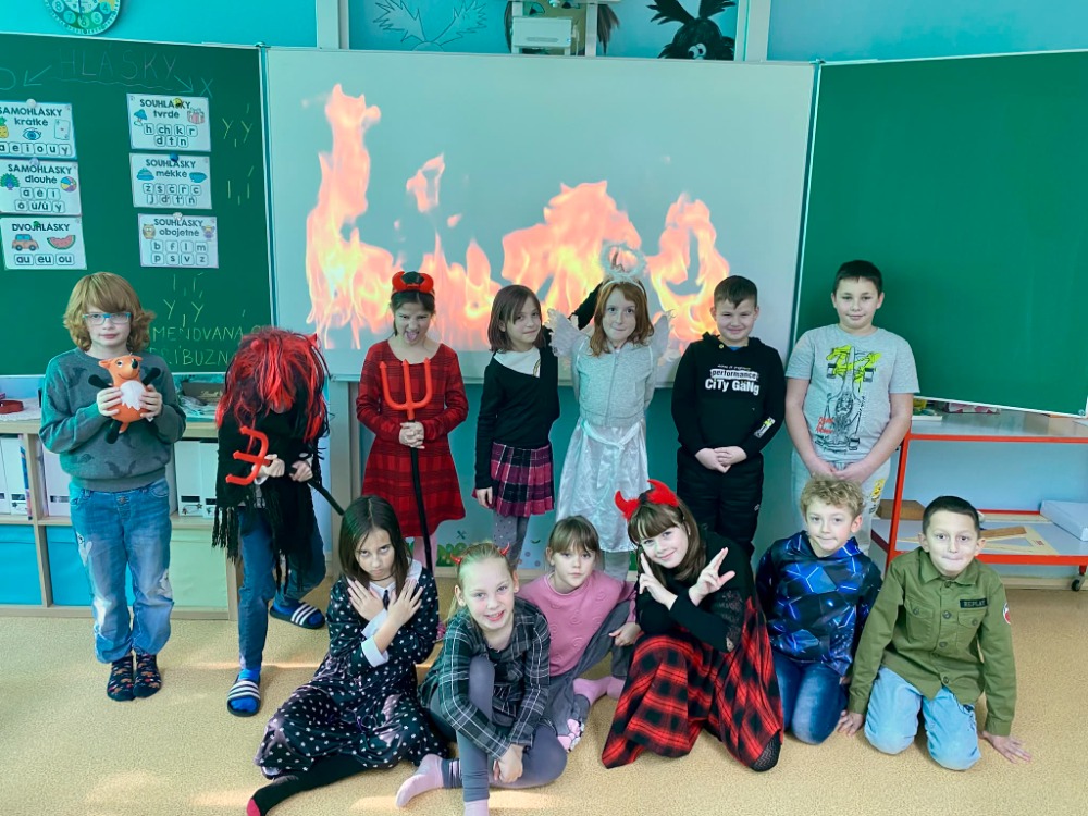 Po návratu do školy žáci pokračovali projektovým vyučováním, které se neslo v čertovském duchu. Pracovalo se ve skupinkách, společně jsme přemýšleli o tom, jaké vlastnosti mají čerti v pohádkách.