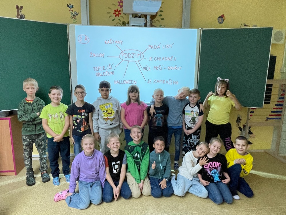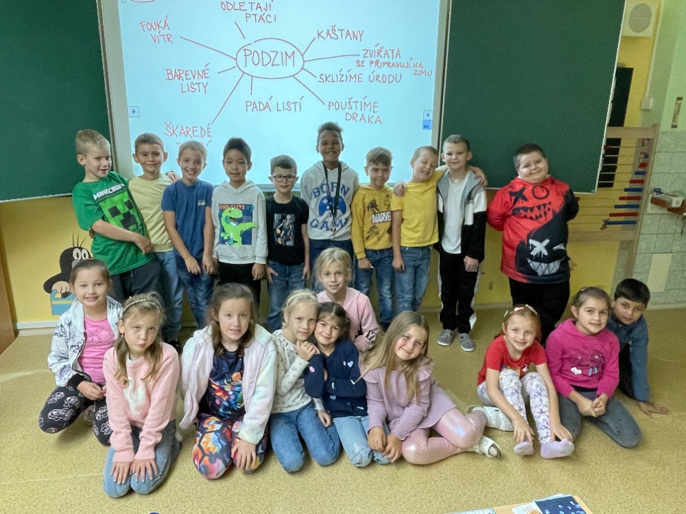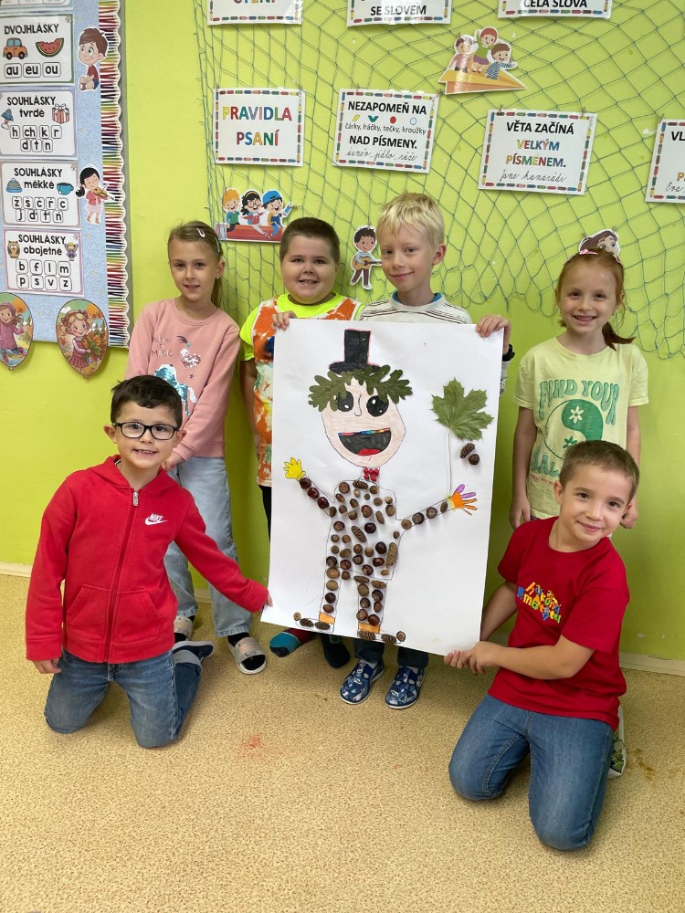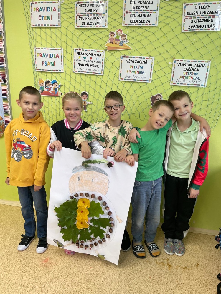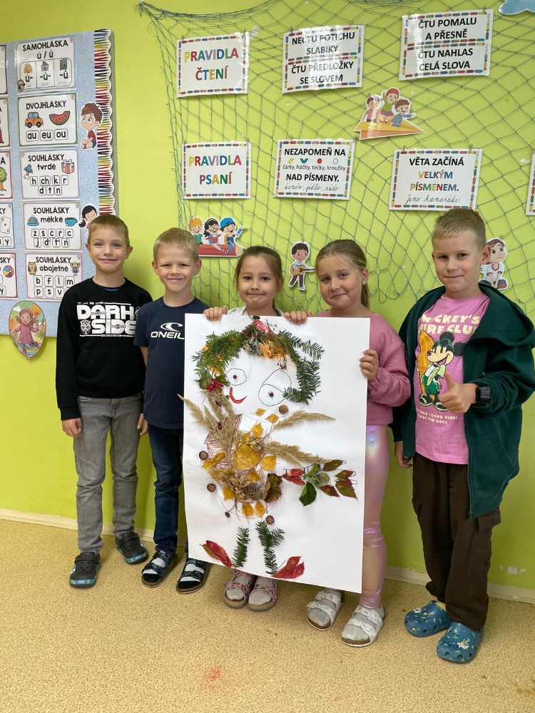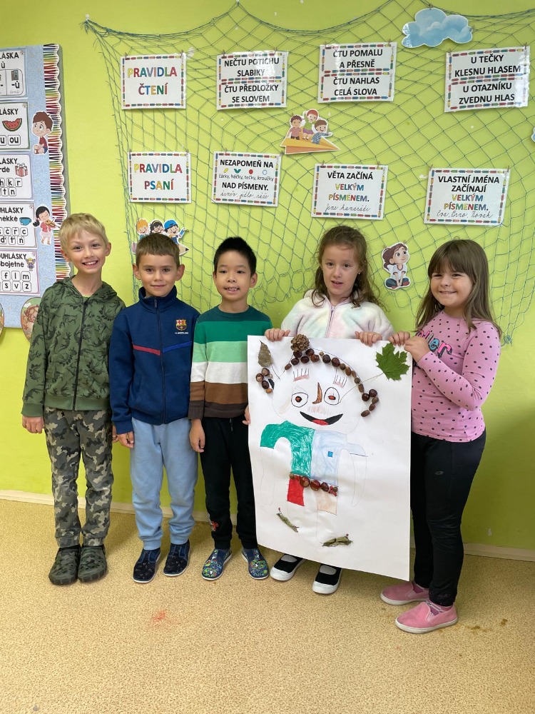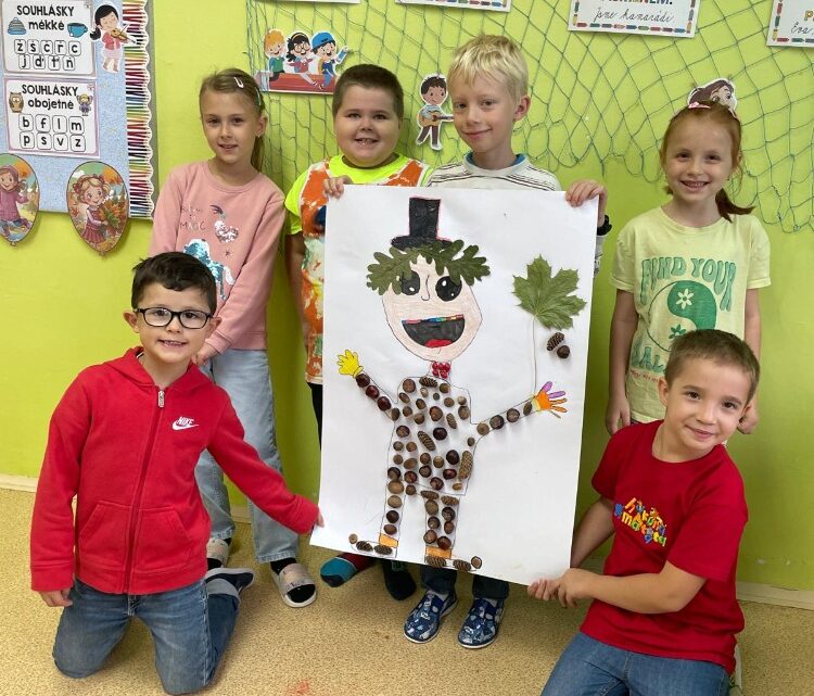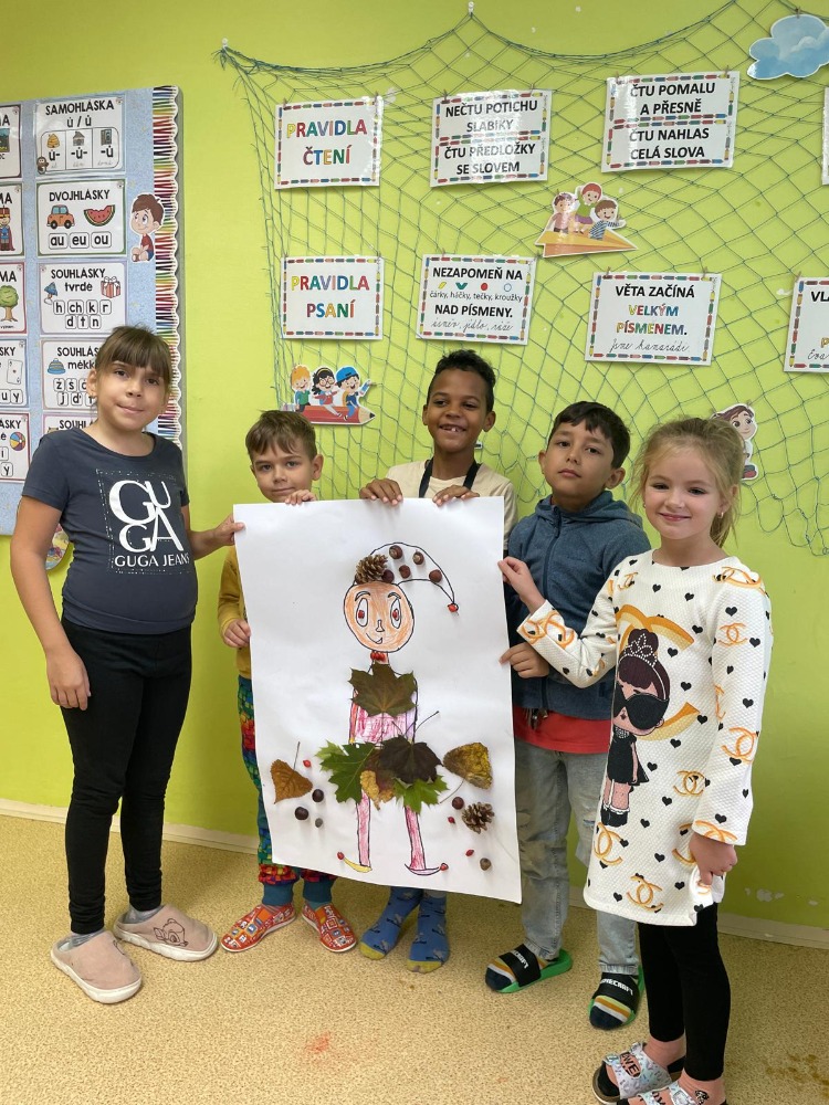 V českém jazyce děti tvořily myšlenkovou mapu, díky které se dozvěděly, co všechno k podzimu patří, pomohly také skřítkovi vyřešit zapeklité rébusy a luštitelské hádanky. V matematice na děti čekaly příklady laděné do podzimní nálady. Nejvíce se ale všichni těšili na skupinové tvoření skřítka z přírodnin. Fantazie dětí neznala mezí – vznikly veselé i tajemné postavičky, které by se mohly zabydlet v opravdovém podzimním lese.