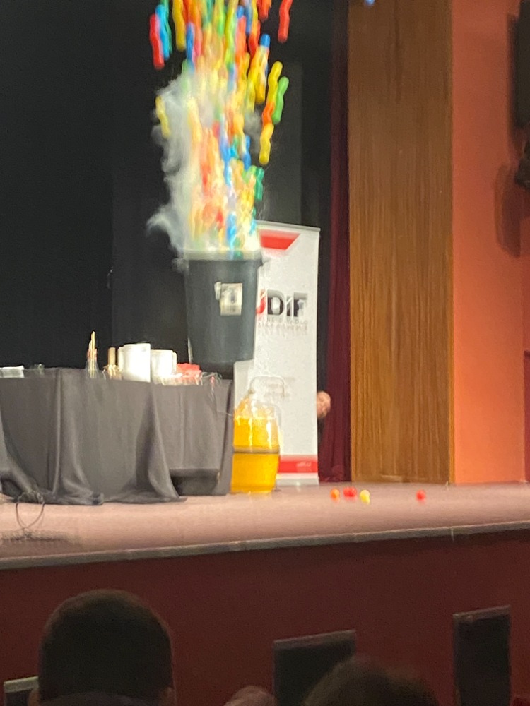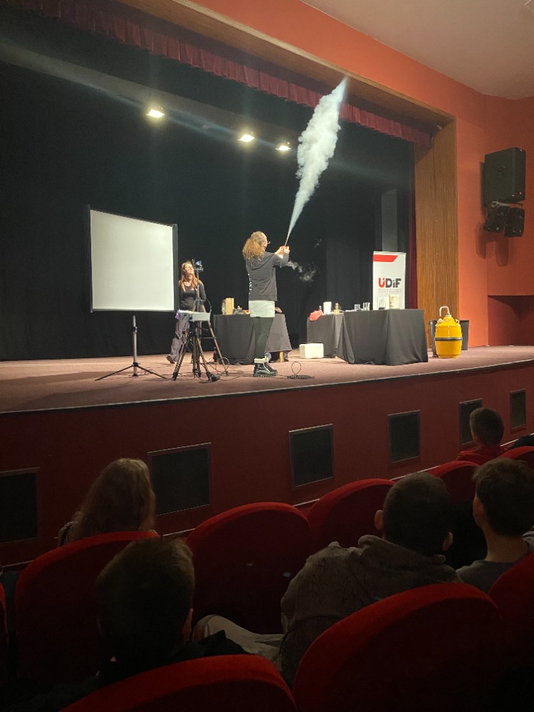 25.2.2026Ve středu 25. února jsme školní den zahájili návštěvou v DKMO, kde nás mladé sympatické dámy z Úžasného divadla fyziky a chemie v Brně hravou a vtipnou formou seznámily s účinky a využitím tekutého dusíku. Na vlastní kůži se s nimi mohl seznámit při jednom z pokusů i sedmák Radek. Viděli jsme skvělé představení a zároveň se mnohé naučili.