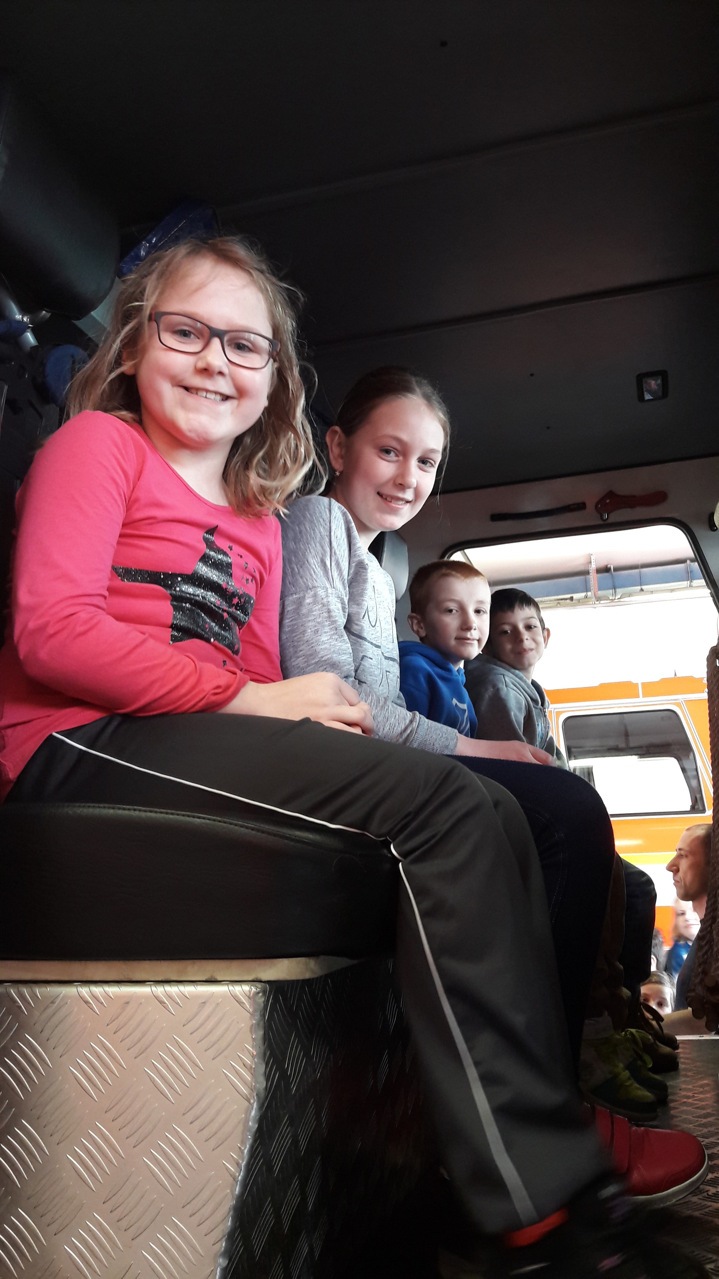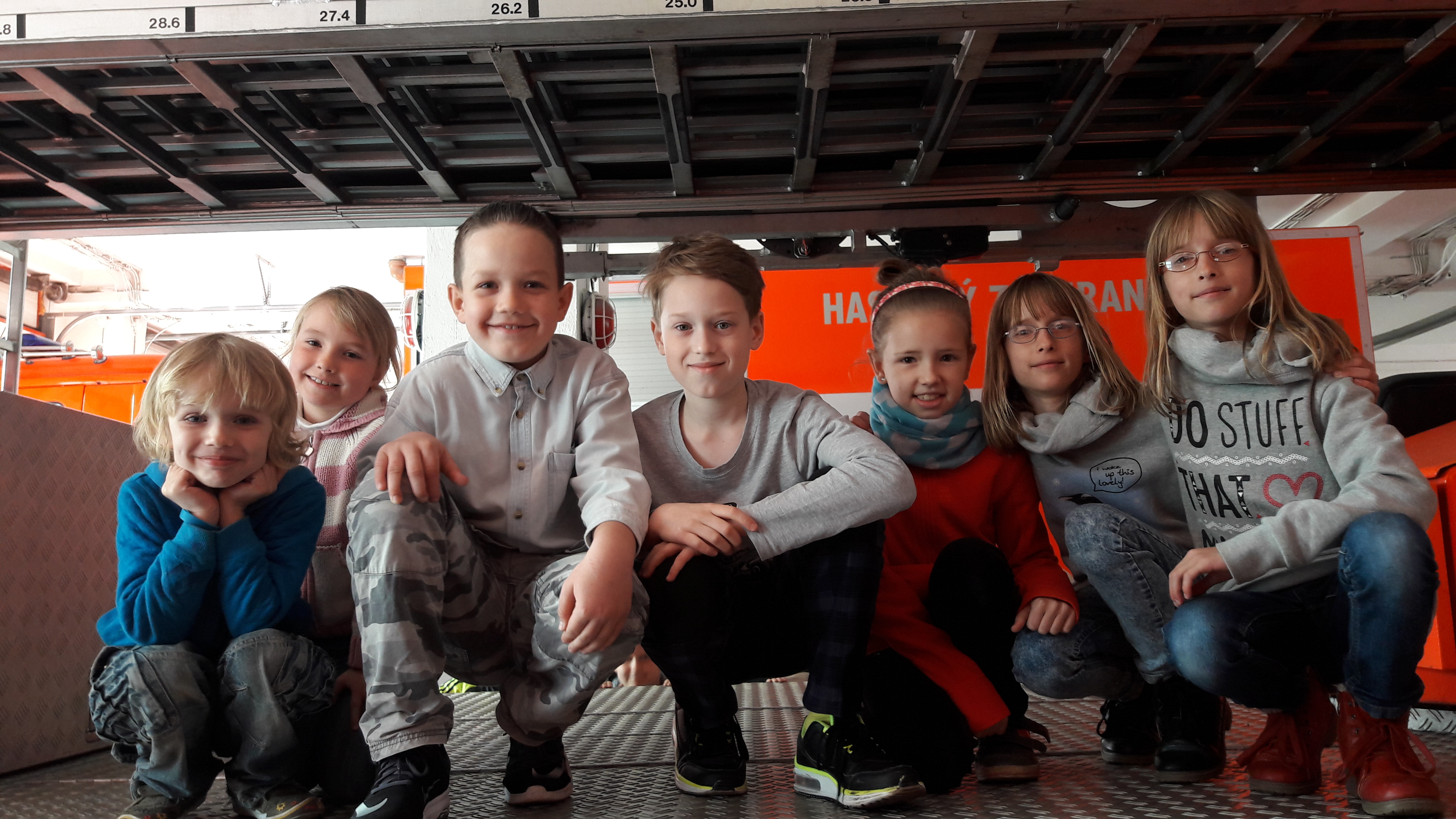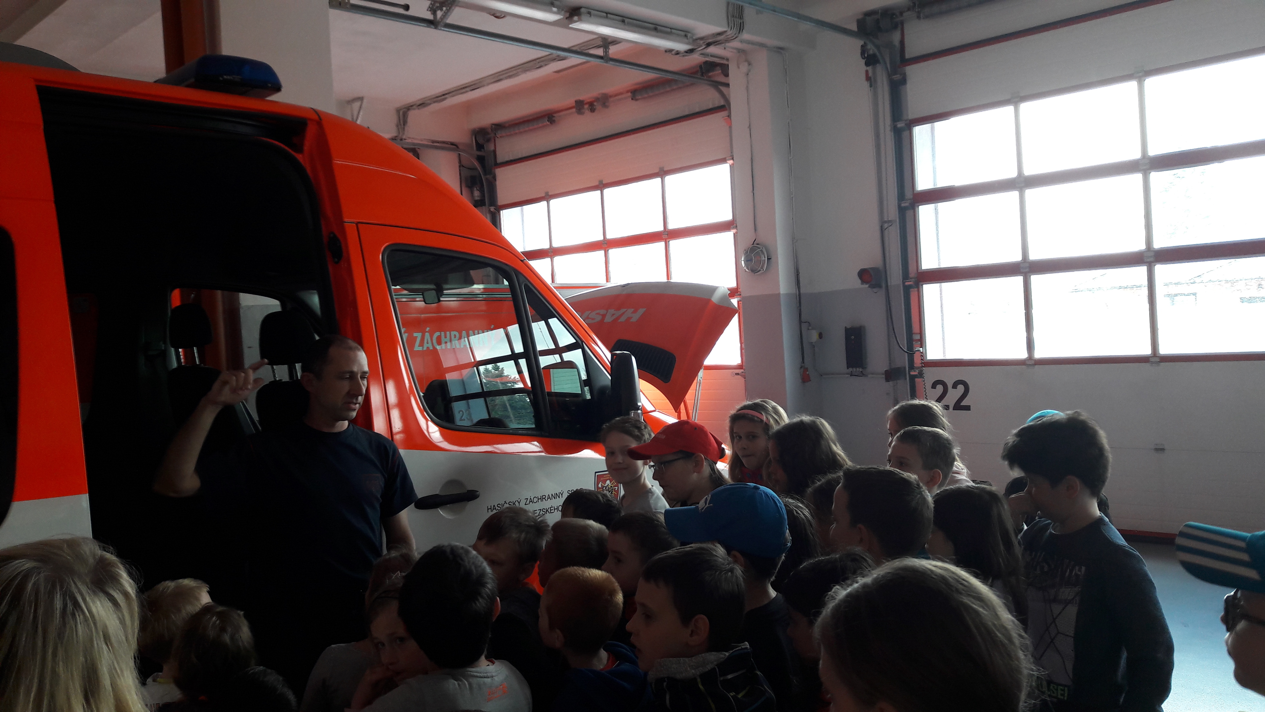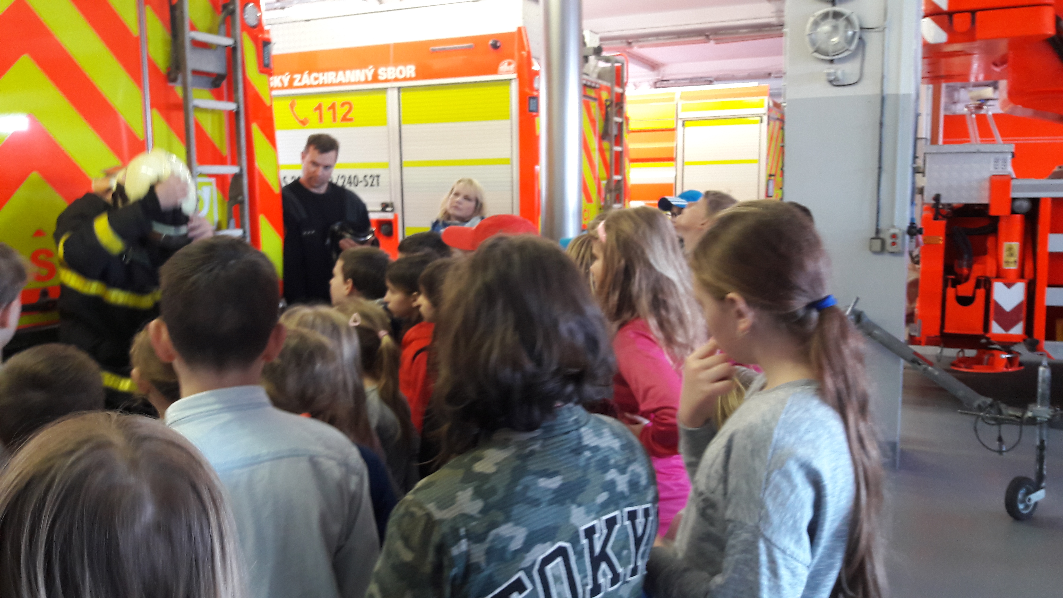 V Karviné nás hasiči nejprve poučili o bezpečnosti a poté jsme se přesunuli do obrovské místnosti, kde jsou připraveny k výjezdu všechny hasičské vozy. Po celou dobu se nám perfektně věnovali hasiči Marcel Dal a Igor Kubalák, ukázali nám nejen hasičské oblečení, které je nutné k jejich práci, ale také veškeré vybavení různých druhů hasičských vozů.