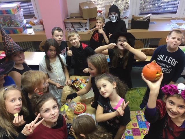 25.10.2018Konec října se přiblížil a děti se začaly těšit na svátek dýní, strašení a hrůzostrašných převleků. Ani letos v blížícím se „dušičkovém“ čase jsme v hodinách anglického jazyka nezapomněli na oslavu tradičního anglosaského lidového svátku Halloween. Popovídali jsme si o všech zvycích, tradicích i legráckách, které k tomuto svátku patří a procvičili slovní zásobu. Děti také přišly v tematických kostýmech a připravily si neodmyslitelné halloweenské občerstvení.