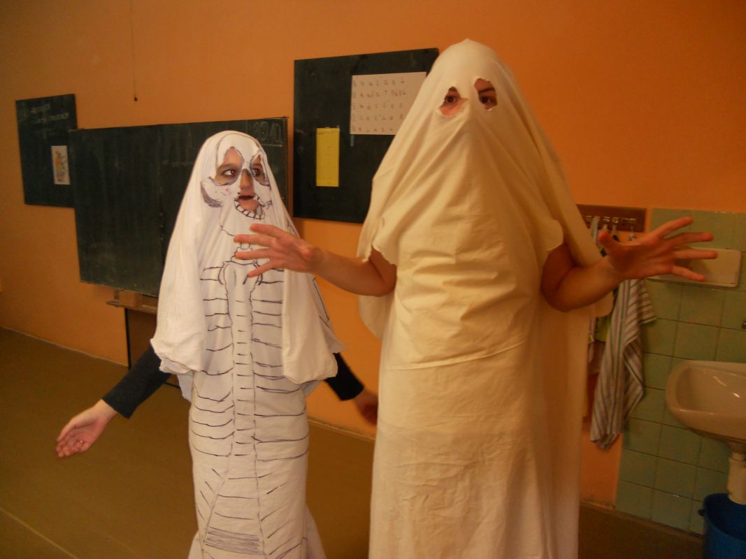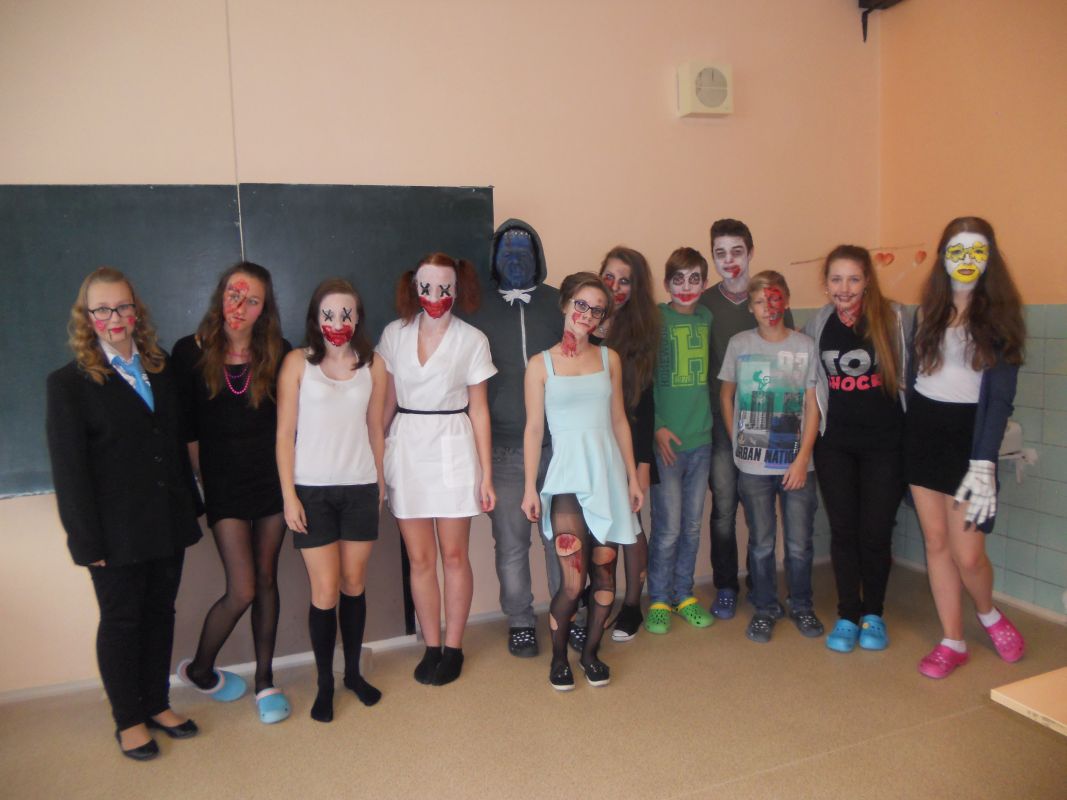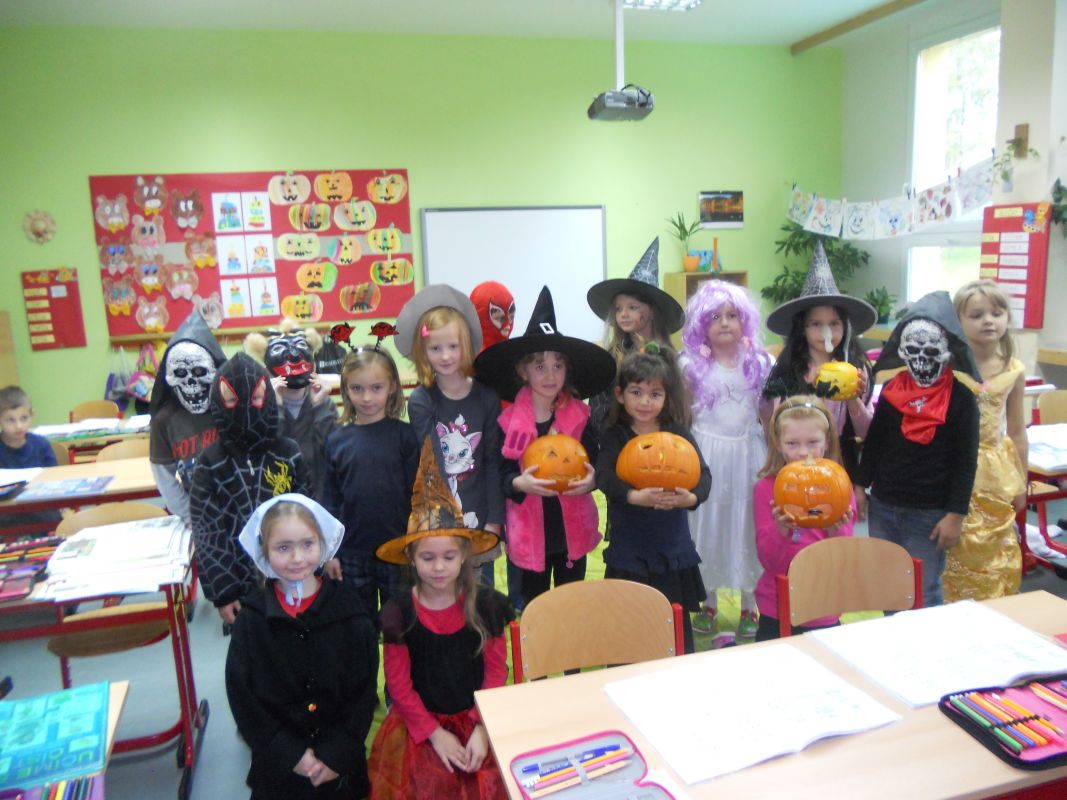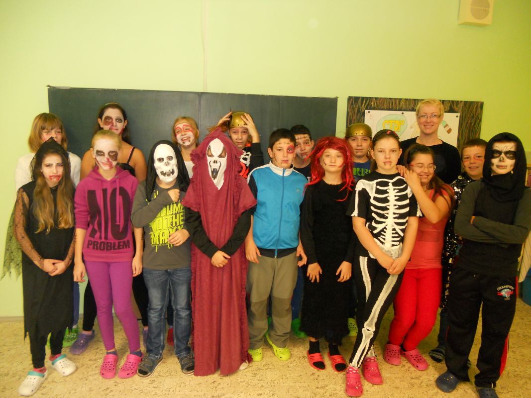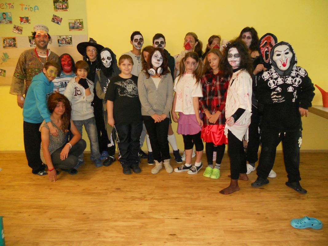 1.11.2014Konec týdne byl doslova strašidelný, ale i zábavný. Žákovská rada pod vedením paní učitelky Dagmar Murové uspořádala pro naše žáky Halloween. Všichni dobrovolníci z celé školy dorazili do školy zcela v netradičních kostýmech a maskách, od milých čarodějnic až po oživlé mrtvoly. Každý převlečený žák tak získal body pro třídu v celoroční soutěži. Dále se hodnotily nejlepší převleky, strašidelné básničky a nástěnky. Během vyučování zástupci žákovské rady seznámili všechny s tímto anglosaským svátkem, který se potajmu vkrádá do našich končin.