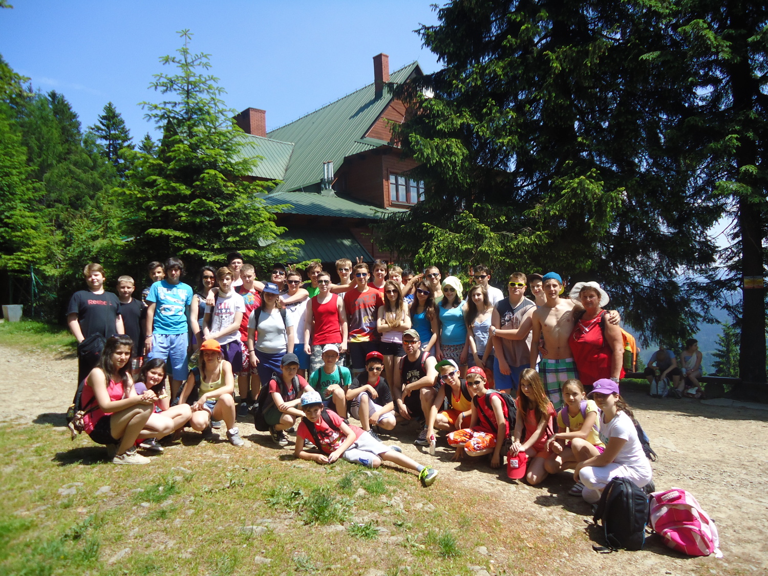 10.6.2014První noc už skončila, vyšlo sluníčko a začal náš druhý den na ozdravném pobytu. Počasí stejně krásné jako včera nás hned po snídani vylákalo na polodenní túru na Velký Stožek na polském území. Tam jsme si odpočinuli, posvačili, abychom nabrali síly na zpáteční cestu, která už nebyla tak vyčerpávající. Na chatě jsme se zbavili propoceného oblečení, provedli hygienu a po vynikajícím obědě jsme odpočívali. Odpoledne jsme si mohli vybrat ze širší nabídky aktivit. Někteří hráli stolní tenis, jiní skákali na trampolíně či si užívali v bazénu, v němž ostatně někteří skončili i nedobrovolně. Mnozí ,,účastníci zájezdu“ se zapojili do soutěže Skokan Hrádku, kterou vyhrál Tomáš Botur! Celý den uběhl neuvěřitelně rychle. Po večeři jsme si v blízkém lomu pod širákem sdělili dojmy z uplynulého dne, ale došlo i na bodování pokojů ( ne všichni měli skvělé výsledky). Večerní program s diskotékou připravily dívky z 9.A. Unaveni, ale spokojeni jsme tak uzavřeli druhý den našeho pobytu v Hrádku.