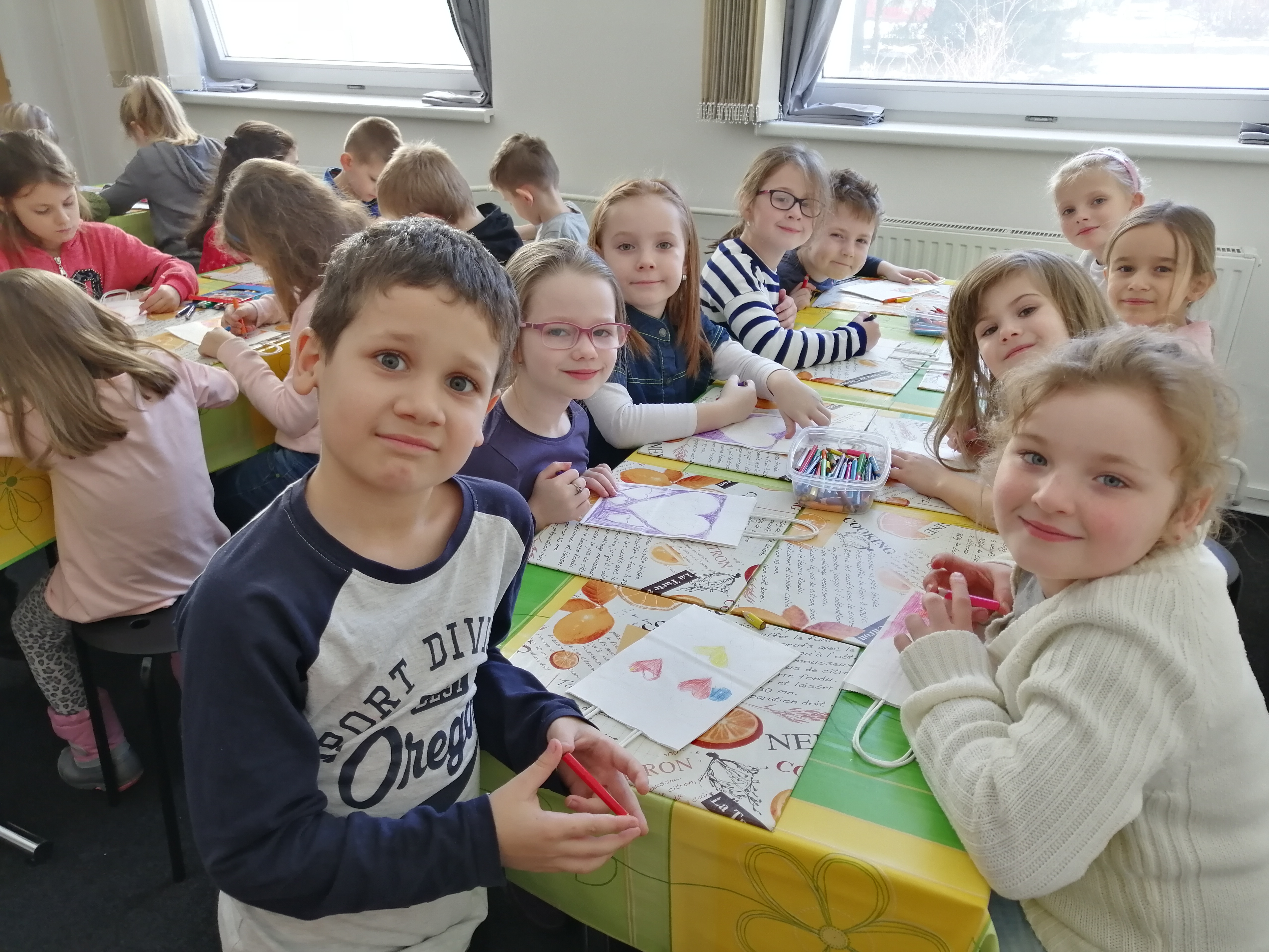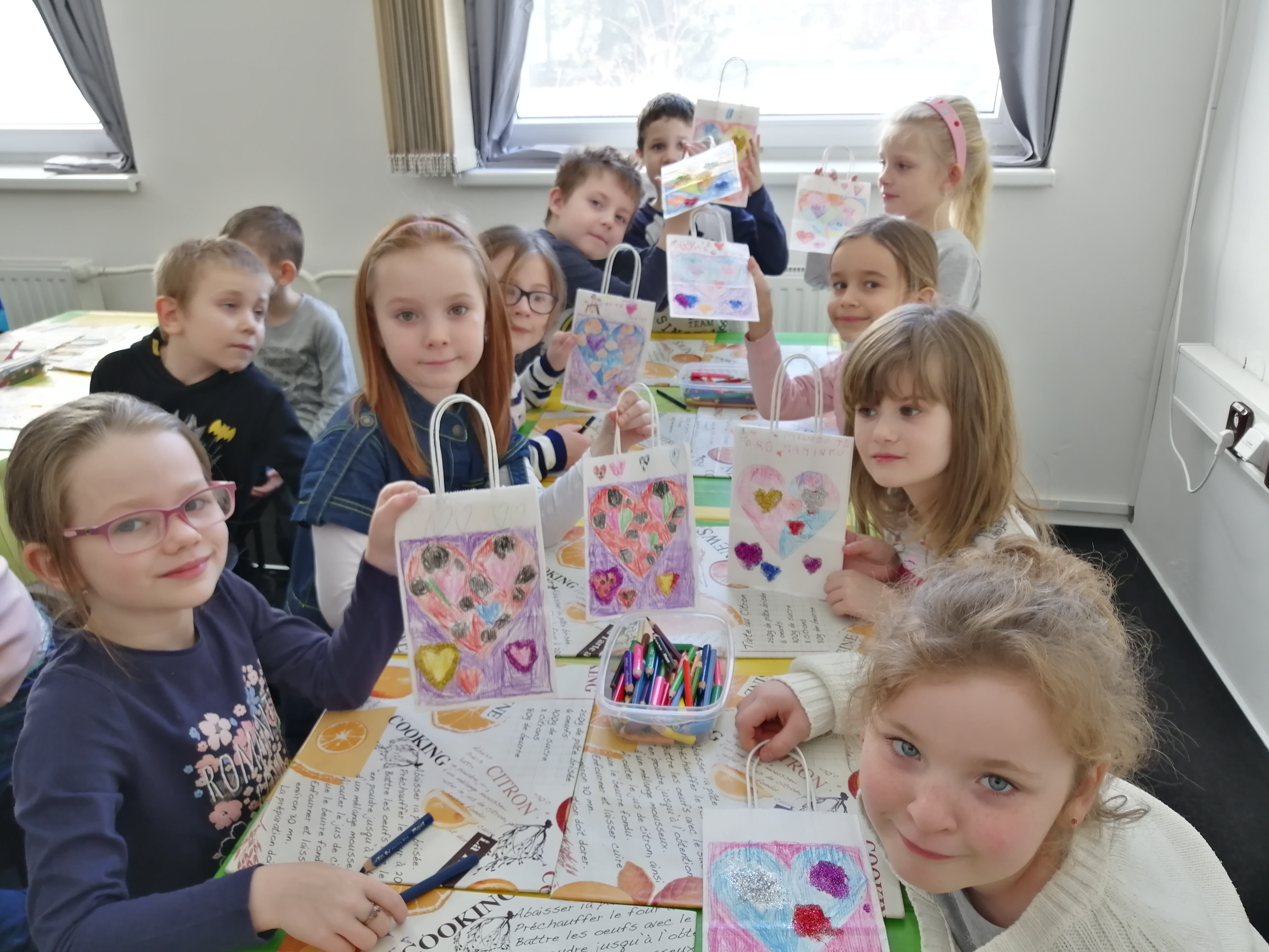 20.2.2019Ve čtvrtek 7. 2. naše třída navštívila valentýnskou výtvarnou dílnu ve Výstavní síni v Orlové. V muzeu na nás čekaly milé paní průvodkyně, které pro nás měly připravený program. Společně jsme z lásky zdobili srdíčky papírové taštičky. Každý si z dílničky odnesl originálně vyzdobený obal na dáreček. Děkujeme.