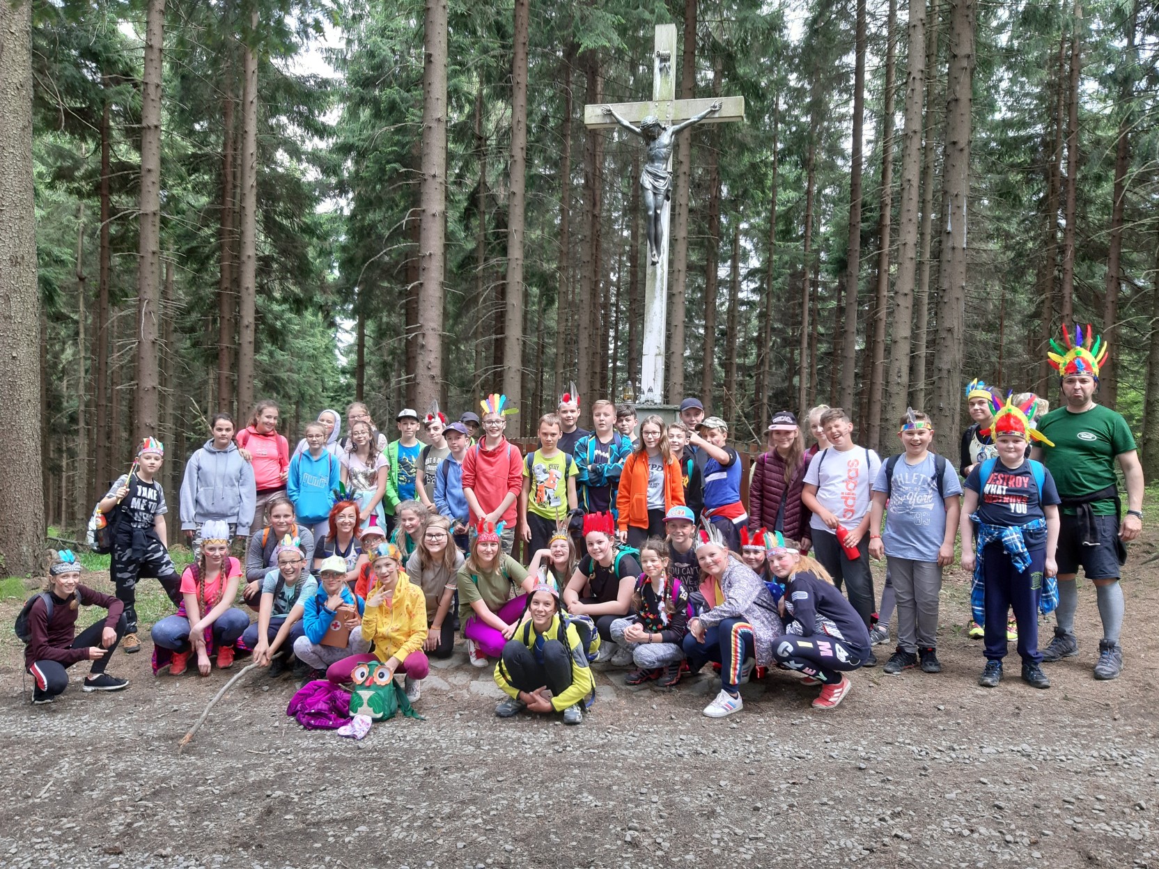28.5.2019Žáci 6.tříd v posledním květnovém týdnu tráví tento čas na Gruni v Domě Sv Josefa. Celý pobyt se nese v indiánském duchu. Tři kmeny, Hauko, Apatcu a Šavlozubci, bojují v celotýdenní hře o poklad na Gruni. Kromě sportovních, vědomostních a indiánských her zvládají nepřízeň počasí a pěší túry na Bílý Kříž a Visalaje. Všichni posílají pozdravy domů a do školy. Howgh, domluvili jsme :).