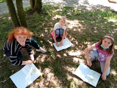 13.5.2021Slunečné jarní počasí přímo lákalo k procházce k místní studánce. Vycházku jsme spojili s poznáváním jarních rostlin. Aby byla výuka ještě zajímavější,malovali jsme v rámci výtvarné výchovy rostliny pouze barvičkami,které nám nabídla příroda. Využili jsme tedy barvivo z květů,stonků a listů rostlin. Druhá polovina výkresu vznikla pomocí otisků části rostlin namočených ve vodových barvách.