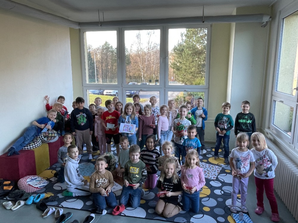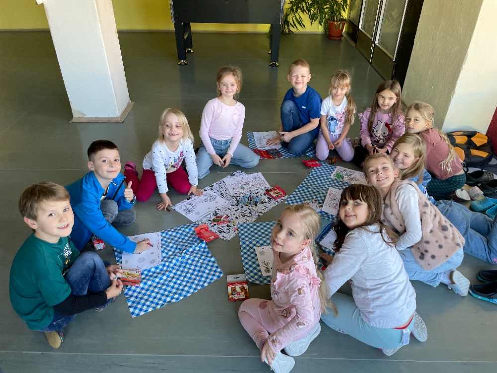 Výsledkem nebyl jen pestrý obrázek plný barev, ale hlavně radost z toho, že všichni společně dokázali pracovat jako tým. Děti si vyzkoušely, že když se ruce spojí, vznikne něco mnohem většího, než by vytvořil každý zvlášť.