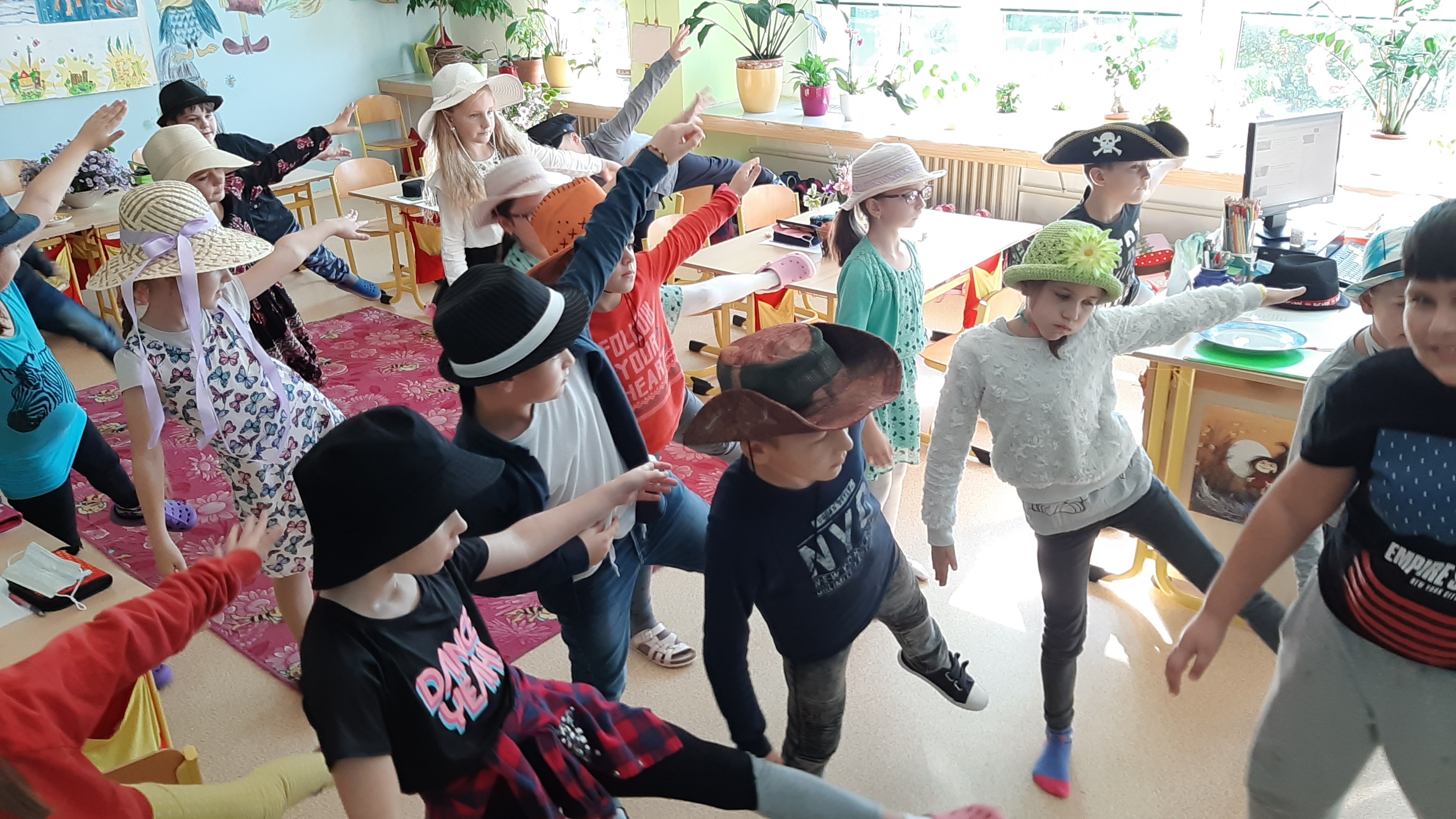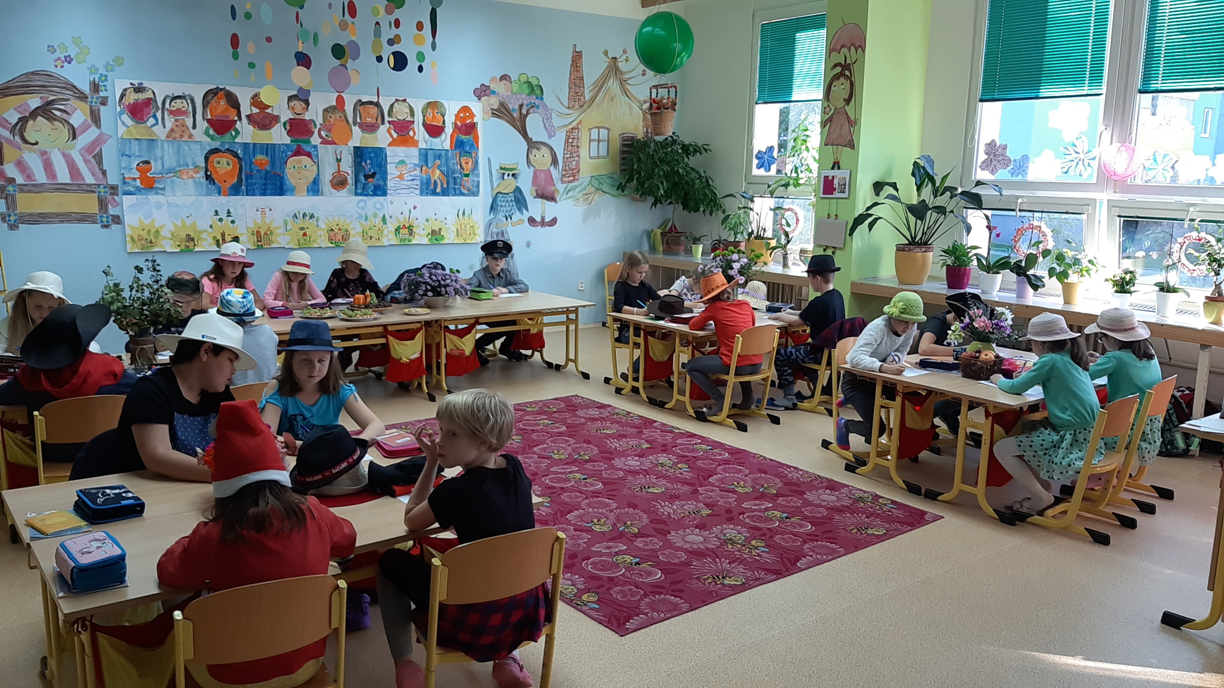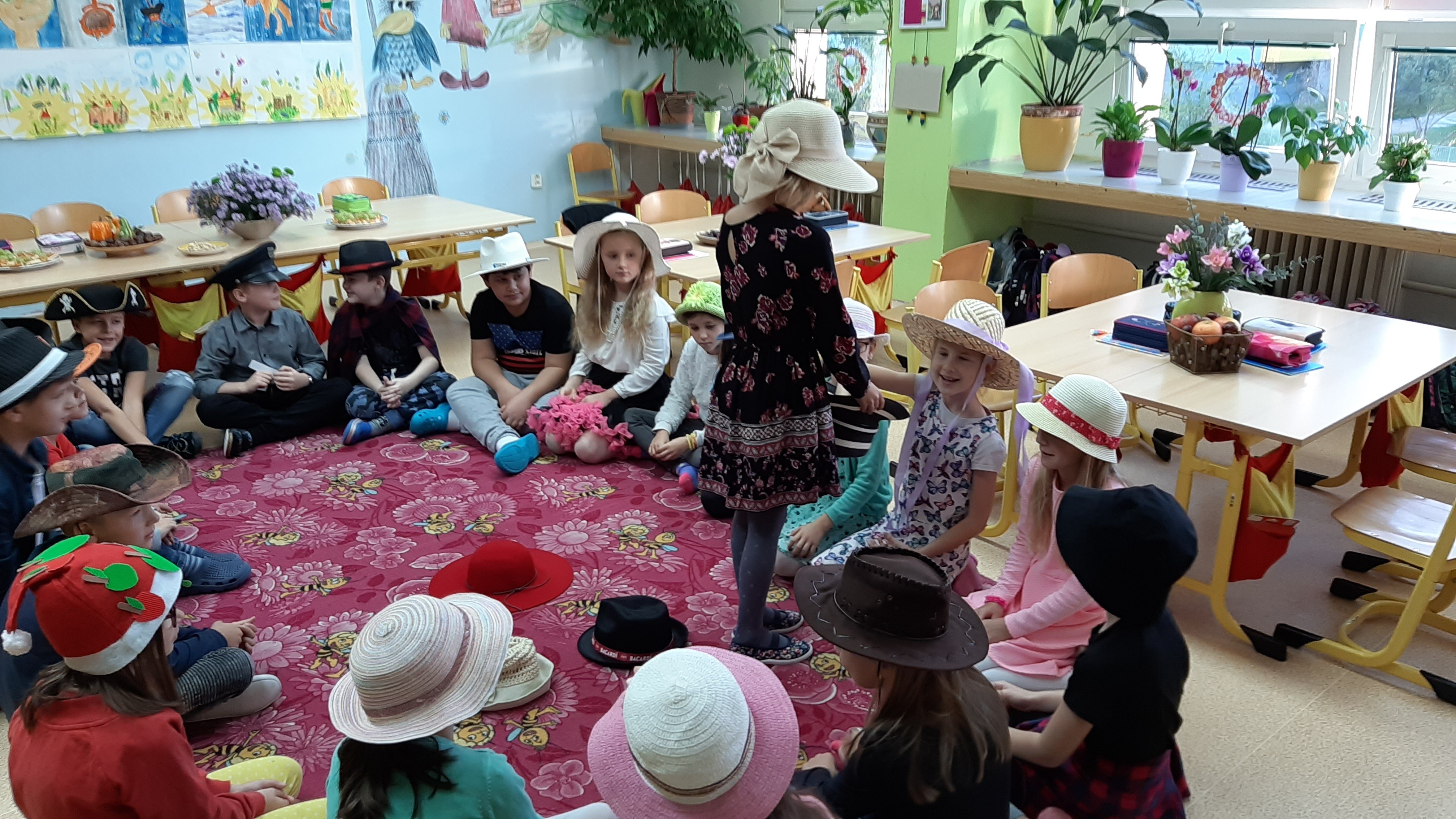 11.10.2020Klobouková mánie zaplavila 3.A. Přejete si být kovbojem, pirátem nebo snad éterickou dámou ve slamáčku? Tady není nic nemožné. A jelikož je podle tajných výzkumů dokázáno, že pokrývka hlavy zabraňuje, aby utíkaly myšlenky, byla ten den koncentrace skvělých nápadů a báječně zábavy ve třídě skutečně mimořádná.