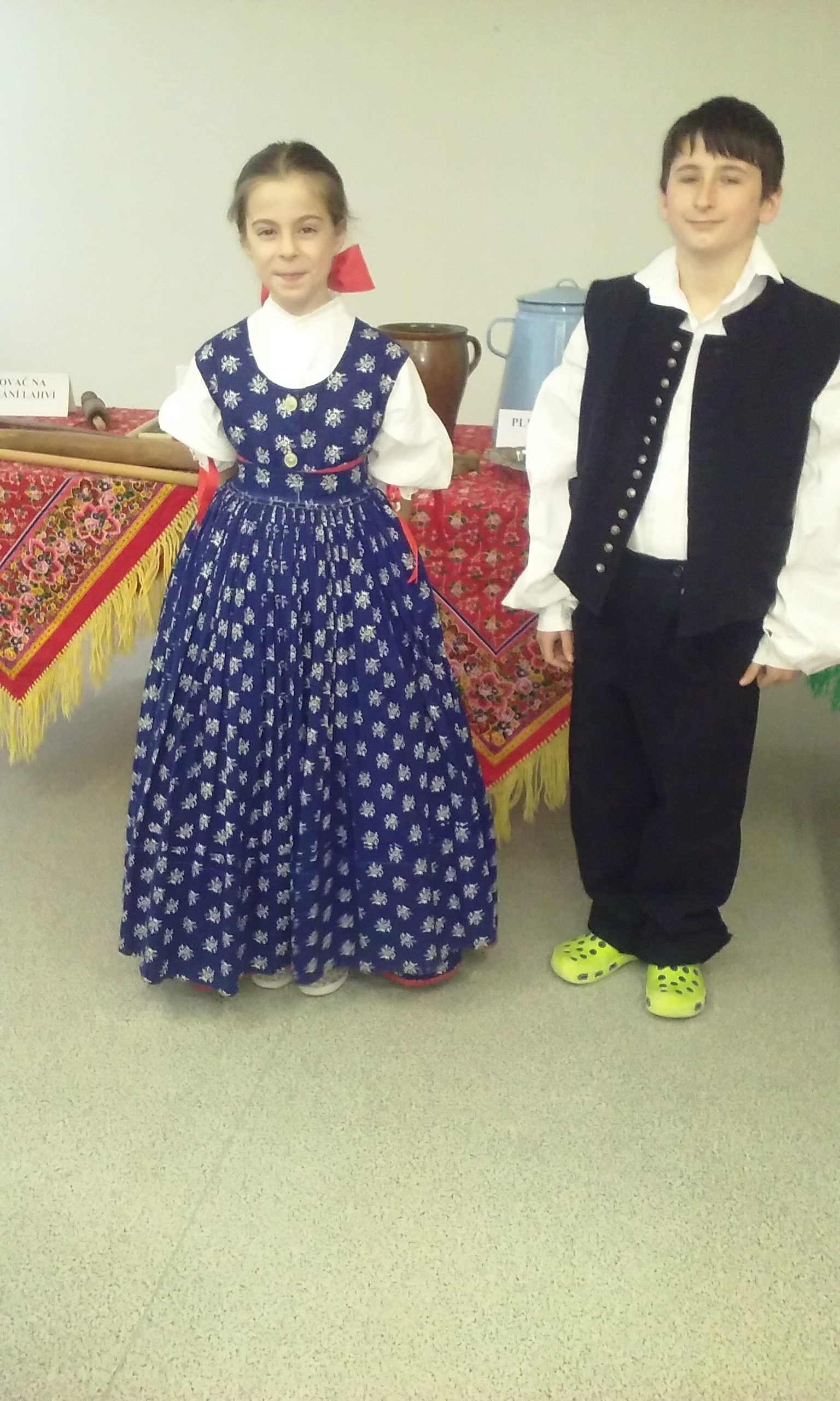 3) krojová – Paní Valová seznámila děti se zvyky, kroji, nářečím a s předměty denní potřeby našich předků. Někteří si mohli vyzkoušet kroje přímo na sobě.
