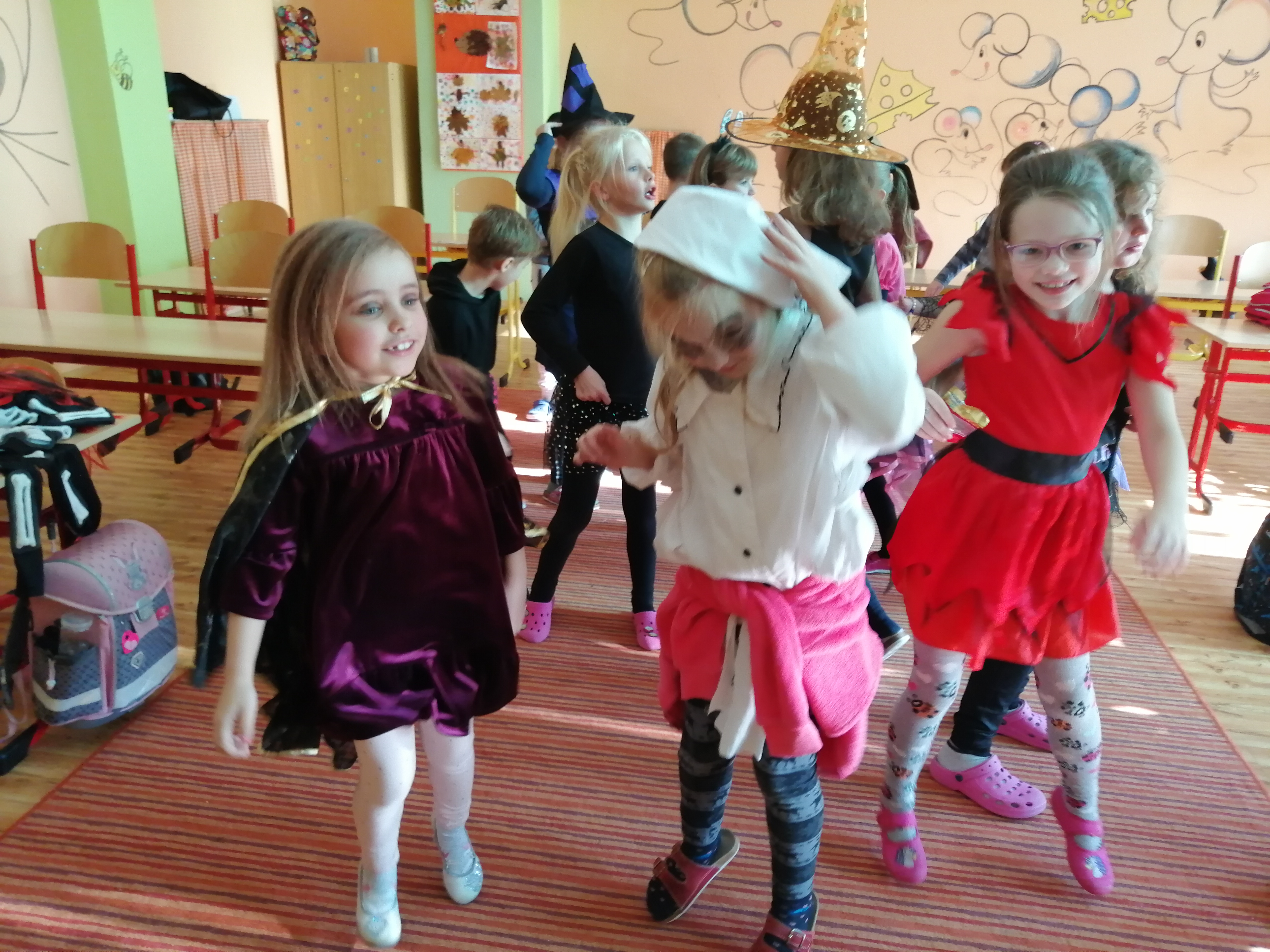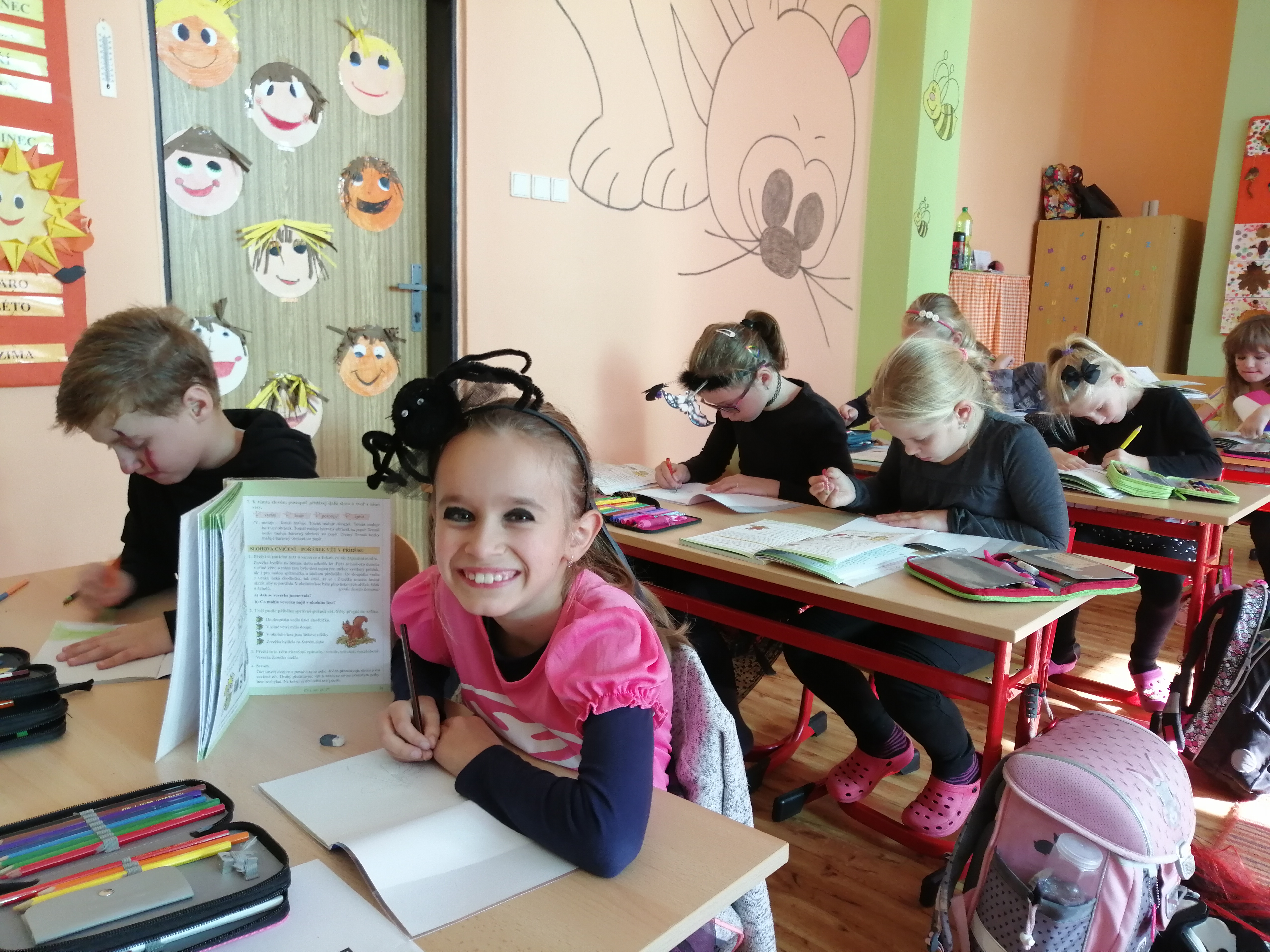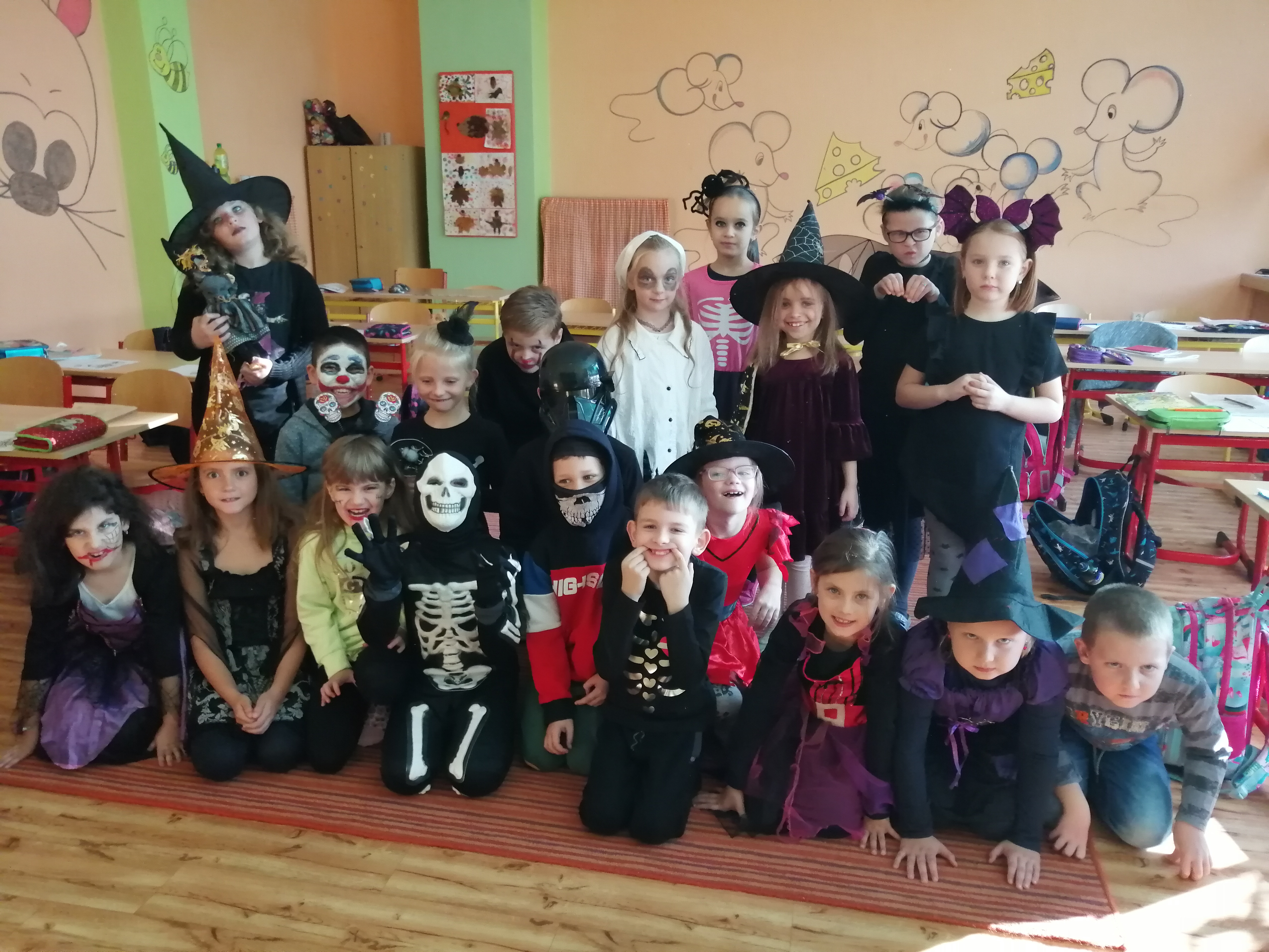 4.11.2019V noci z 31. 10. na 1. 11. se z žáků 2. B stala halloweenská strašidla. Do školy přišla s aktovkou a velkou chutí se něco nového naučit. Každé z nich mělo zvláštní moc J. Někdo uměl kouzlit v českém jazyce, jiný perlil v matematice. Byla tu i taková, která vynikala v kreslení, tanci a zpívání.