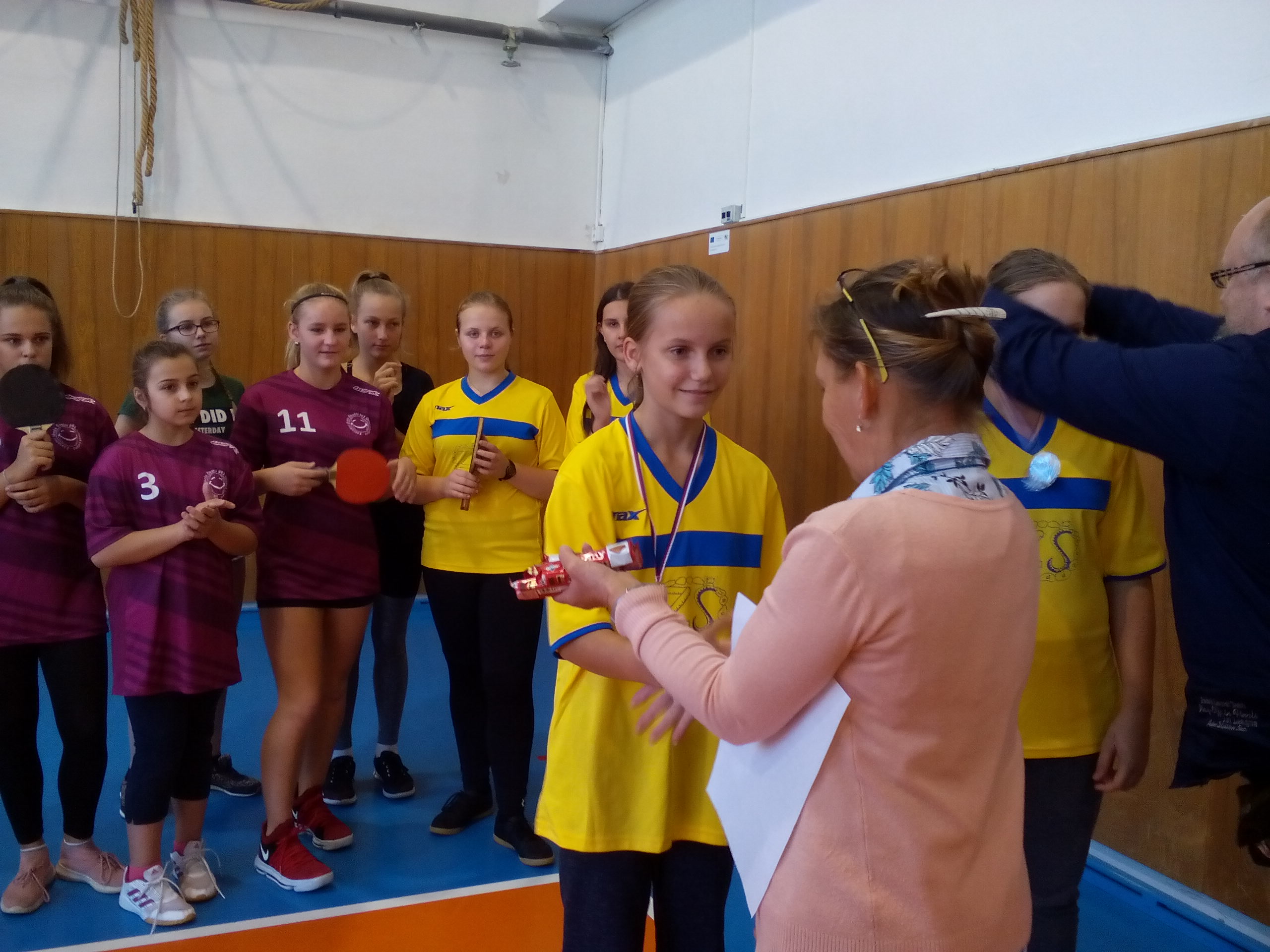 15.10.2018Ve čtvrtek 11.10. 2018 se jedenáct našich žáků zúčastnilo městského kola ve stolním tenise. V kategorii mladších žáků nás reprezentovali Matyáš Vítek, Richard Láznička a David Chrástecký. V kategorii starších žáků Martin Rylko, Matěj Zelníček a Kristián Kováč. Za starší žačky Vanessa Kováčová, Lucie Pakostová a Julie Černeková. Za mladší žákyně sestry Kateřina a Ludmila Boďové. Oba týmy děvčat získaly umístění na bedně. Mladší žačky 2. a starší žačky 3. místo. Mladší chlapci skončili ještě o stupínek lépe a umístili se na krásném a vybojovaném 1. místě. Mladší chlapecká ketegorie byla letos výkonnostně velmi vyrovnaná a chlapci tak bojovali do poslední chvíle. Kdy za stavu 3:3 na body 1:1 na sety a 10:10 na míčky, rozhodl v nekonečném boji Matyáš Vítek, který dva poslední míče vyhrál a tým tak dovedl do vítězství. Všem sportovcům děkujeme za reprezentaci a gratulujeme!