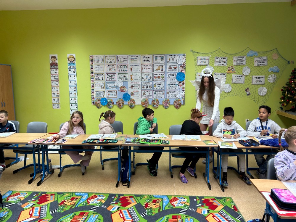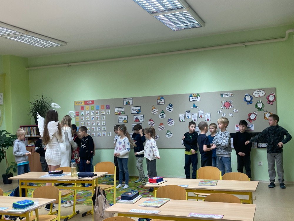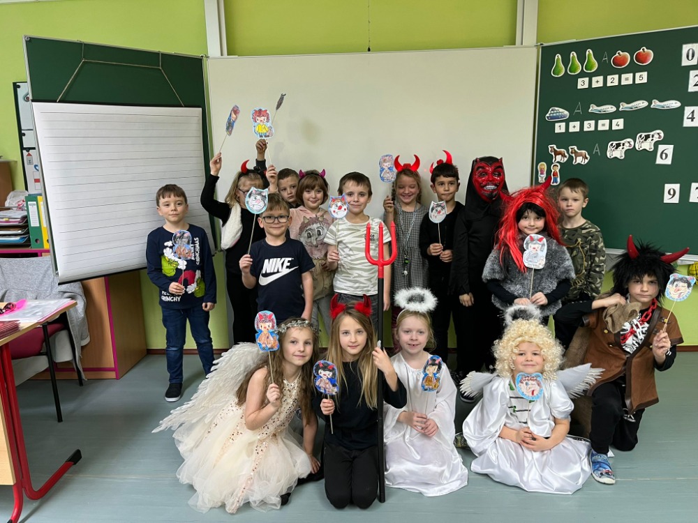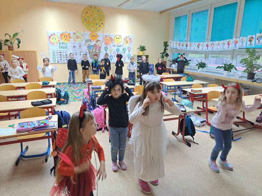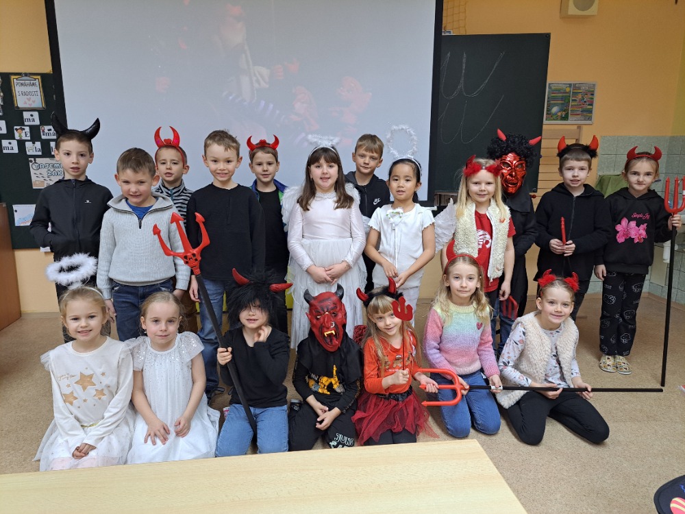 9.12.2025V pátek 5. 12. zavítali do našich tříd Mikuláš, čert a andělé a přinesli s sebou spoustu radosti i očekávání. Žáci 1. stupně si tento den zpestřili projektovými dny, během kterých přišli oblečeni v maskách čertů a andělů. Společně si užívali zpívání, tanec a plnění zajímavých úkolů. Nechyběla ani tvořivá činnost a výroba tematických dekorací. Celé dopoledne se neslo ve velmi příjemné a veselé atmosféře. Děti si odnesly nejen drobné odměny, ale především krásné zážitky.