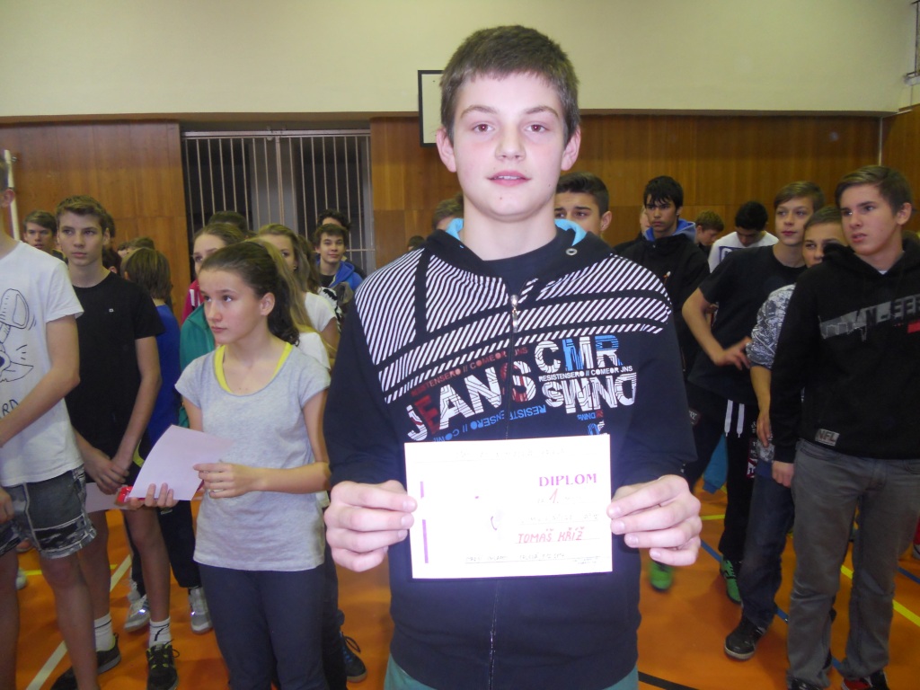 6.12.2014V pátek 5.12. se vybraní žáci naší školy zúčastnili soutěže ve skoku vysokém. Soutěž proběhla v tělocvičnách ZŠ K. Dvořáčka. Účastníci : Aneta Gebková-6.A, Michal Liška-6.A, Dominik Fůra-6.A, Christian Tvrdý-6.B, David Jurček-7.B, Tomáš Kříž-8.A, Jiří Michalík-9.A a Filip Daněk-9.A. Nejlépe si vedl Tomáš Kříž, který v kategorii starších chlapců zvítězil. Všem zúčastněným děkujeme za reprezentaci naší školy.