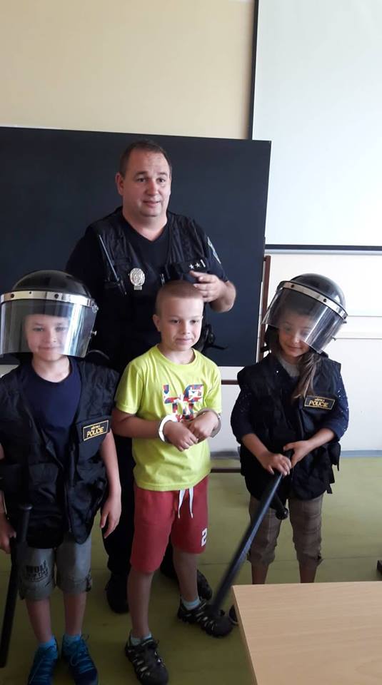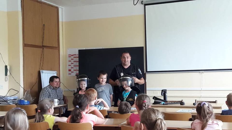 11.6.2018V úterý 5. června 2018 navštívili prvňáčci Městskou policii Orlová. U vchodu nás všechny přivítal strážník Libor Kleiber a odvedl nás do místnosti, kde dětem společně s Mgr. Václavem Šarochem například přiblížili práci městské policie, zopakovali společně základní dopravní značky a dokonce si někteří mohli vyzkoušet, jaké to je mít na rukou pouta či policejní přilbu a vestu. Poté jsme se přemístili do další místnosti, kde nám byl ukázán kamerový systém, který je nainstalován v našem městě. Děti, které dobře odpovídaly na otázky, dostaly i drobné dárky nebo bonbóny.