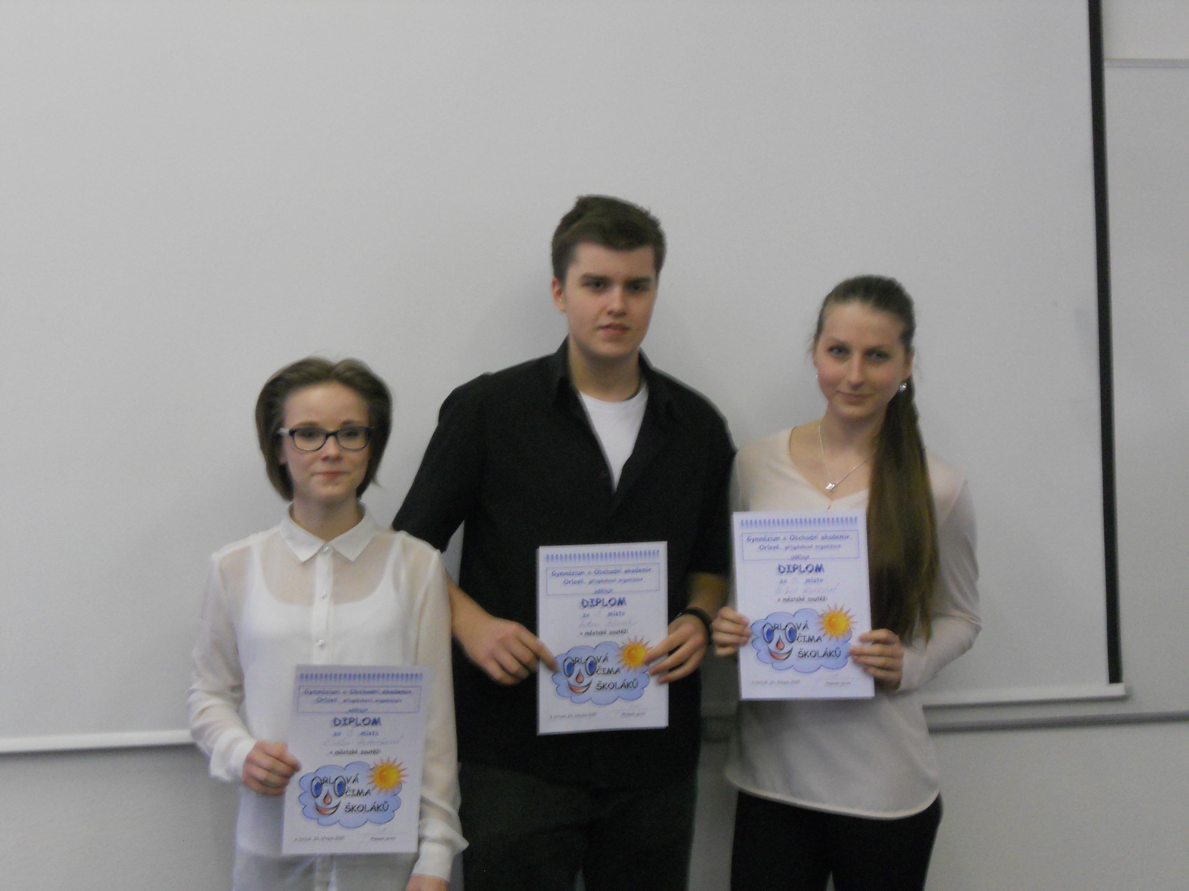 Naši školu reprezentovala trojice žáků 9 A – Adam Blanik, Nikol Kuncová a Eliška Peterková. Se zadaným tématem se poprali velice zodpovědně. Svým rozsáhlým výzkumem, jednak v řadách žáků 8. a 9. ročníků orlovských základních škol a jednak v řadách občanů, zmapovali negativní jevy u mladistvých a to je kouření a pití alkoholu. Výsledky jejich zjištění byly alarmující. Mezi dnešní orlovskou mládeží je 40% kuřáků a 60% mladistvých pije alkohol! Upozornili i na to, jak lehce dostupné tyto látky pro naši mládež jsou.