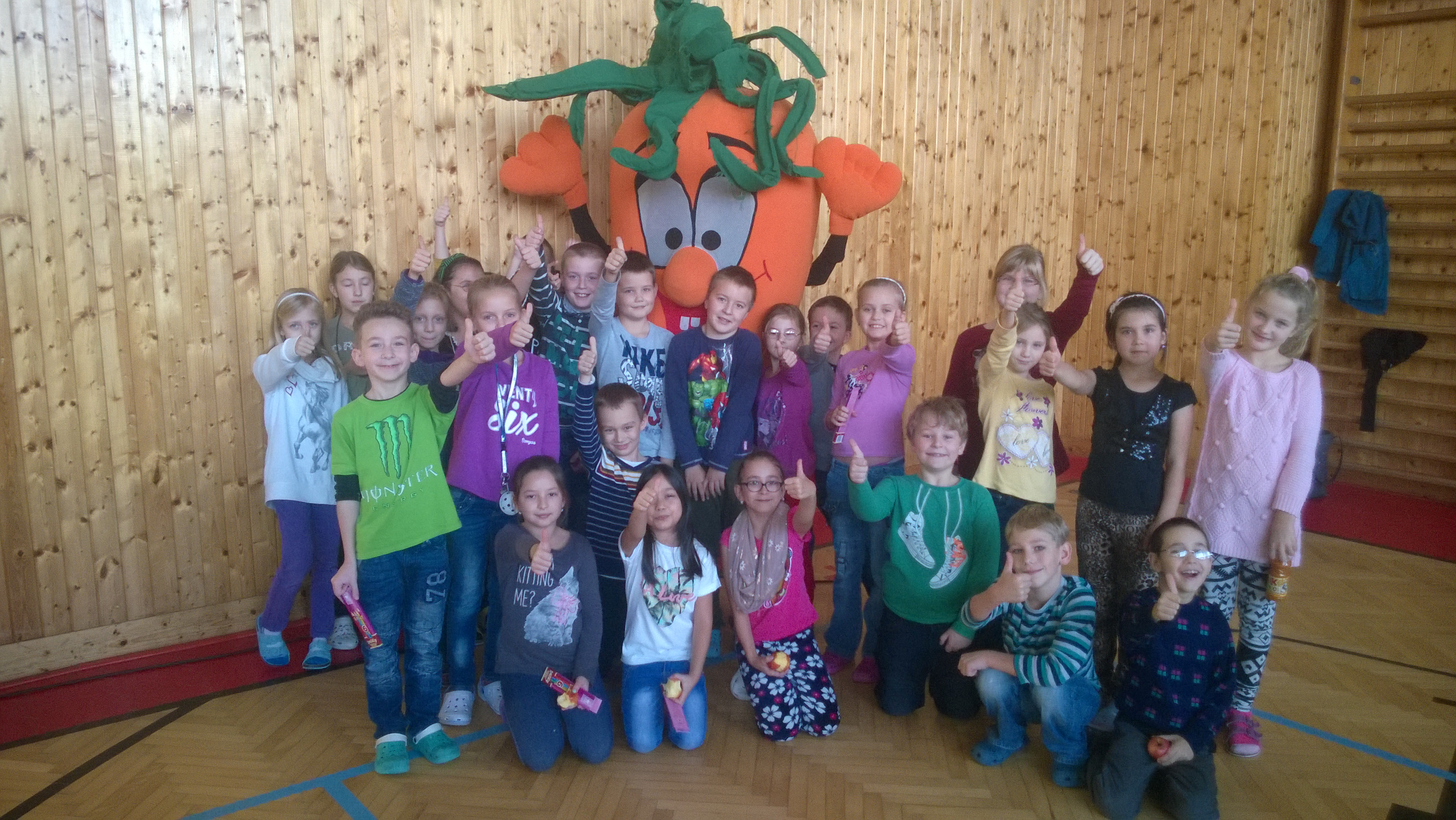 26.11.2015Dne 24. 11. 2015 jsme ve škole na 1. stupni měli velmi poučnou přednášku z Ovocentra. Děti se například dověděly, jaké vitamíny se vyskytují v některých druzích ovoce, kdy je dobré sníst banán a kdy zase ananas. Během celé akce mohly děti také soutěžit o zdravé odměny, které jim velmi chutnaly. Všichni děkujeme za pěkné moderování Kubovi a jeho kamarádce Mrkvičce.