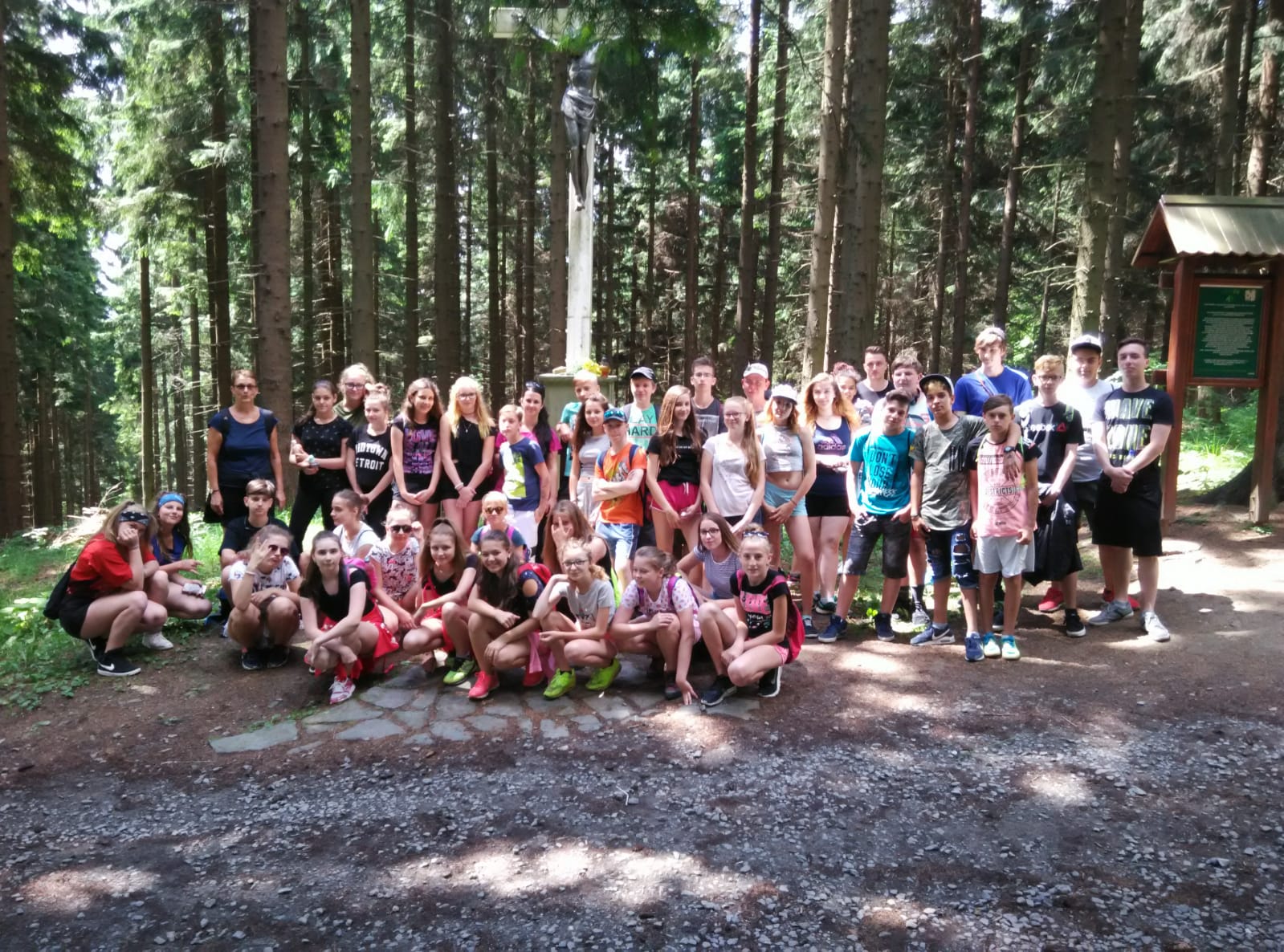 25.6.2018Vybraní žáci tříd 7.A, 7.B a 8.A se v druhém červnovém týdnu zúčastnili ozdravného pobytu na horské chatě Dům sv. Josefa na Gruni. Hned po příjezdu byly děti rozděleny do 4 týmů, ve kterých pak po celý týden proti sobě soutěžily. V pondělí se žáci zúčastnili vycházky na Bílý kříž, kdy si poprvé a naposled užili slunečného počasí. Zbytek týdne už nám počasí příliš nepřálo, proto byla většina zbylých dní v duchu společenských a vědomostních soutěží. Chvíle bezdeští byly využity k soutěžím, sportovním turnajům a bojovým hrám v přírodě.