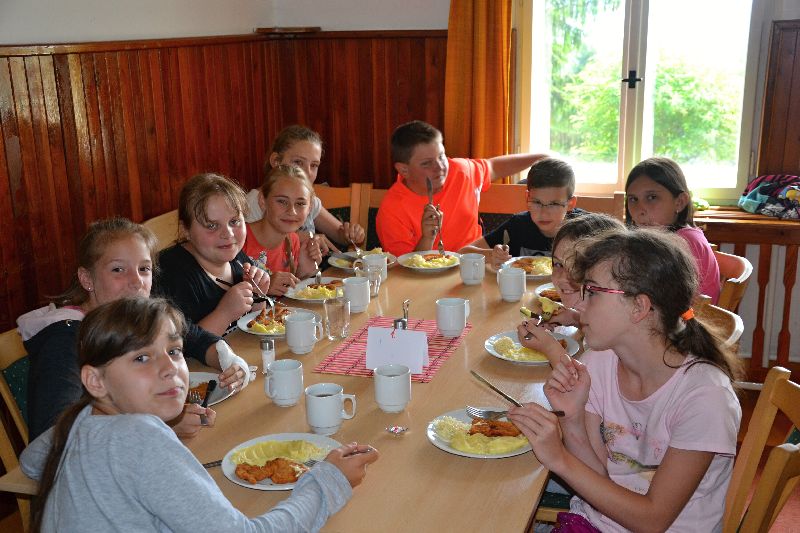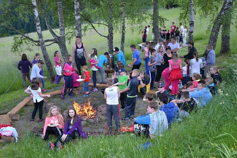 10.6.2016Posíláme další pozdravy z ozdravného pobytu. Počasí nám vychází na jedničku. V úterý jsme zvládli pochod na Bílý kříž a Švarnou Hanku, turnaj ve vybíjené a večer seznamovací disco. Středu jsme zahájili krátkou vycházkou po okolí a návštěvou nás mile překvapil pan ředitel. Po krátkém odpočinku, jsme se vrhli (někteří i v botech) do připraveného bazénu. Poté nám učitelé přichystali bojovou hru v lese. Také jsme stavěli lesní stavby a večer jsme začali táborákem s opékáním párků. To však ještě nebyl konec her. Po setmění jsme se odebrali do lesa, kde jsme všichni zdárně zvládli stezku odvahy. Unavení a plni dojmů jsme doslova padli do postelí.