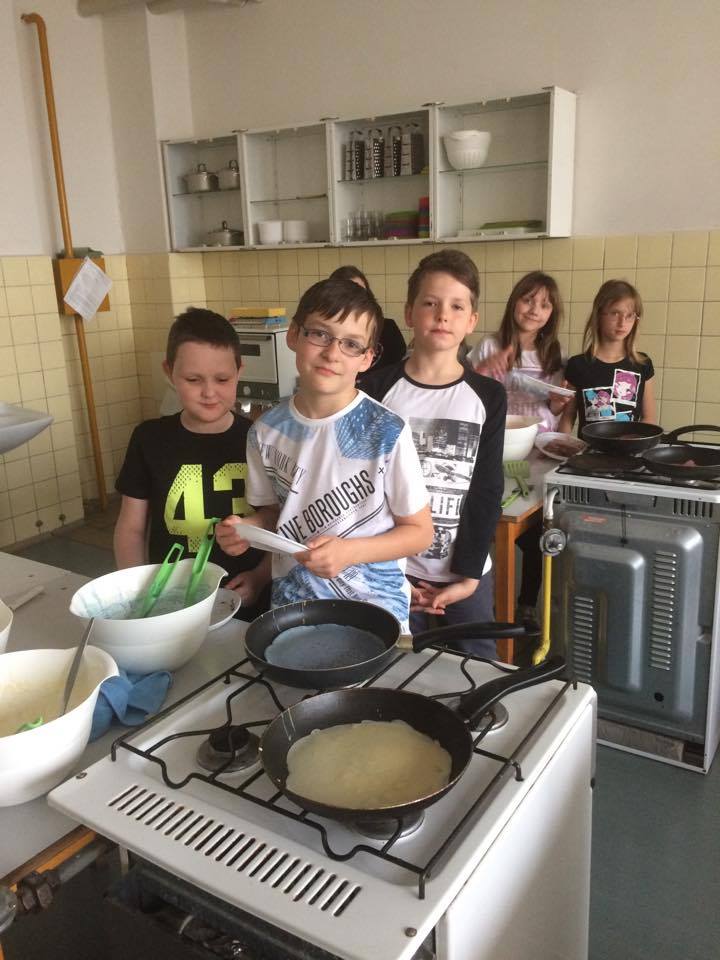 Letošní Palačinkový den připadal na Popeleční středu (Ash Wednesday). Přesně jsme dodrželi tradici a v tento čas si s žáky společně v rámci pracovních činností a výtvarné výchovy udělali palačinky. Jelikož jsme ale chtěli tento svátek propojit i s ostatními předměty, projekt jsme protáhli až do dnešních dnů. V literatuře jsme se s tímto svátkem seznámili a dohledali i jeho historii. V anglickém jazyce jsme si na toto téma procvičili novou slovní zásobu a přečetli si, jak tento svátek slaví děti ve Velké Británii. Na konci projektu jsme v tělesné výchově uspořádali tradiční palačinkový závod, jehož historii znali již žáci z hodin literatury. Cílem závodu bylo uběhnout v zástěře, s šátkem na hlavě a s pánví v ruce stanovenou trasu a při tom otáčet „palačinku“.