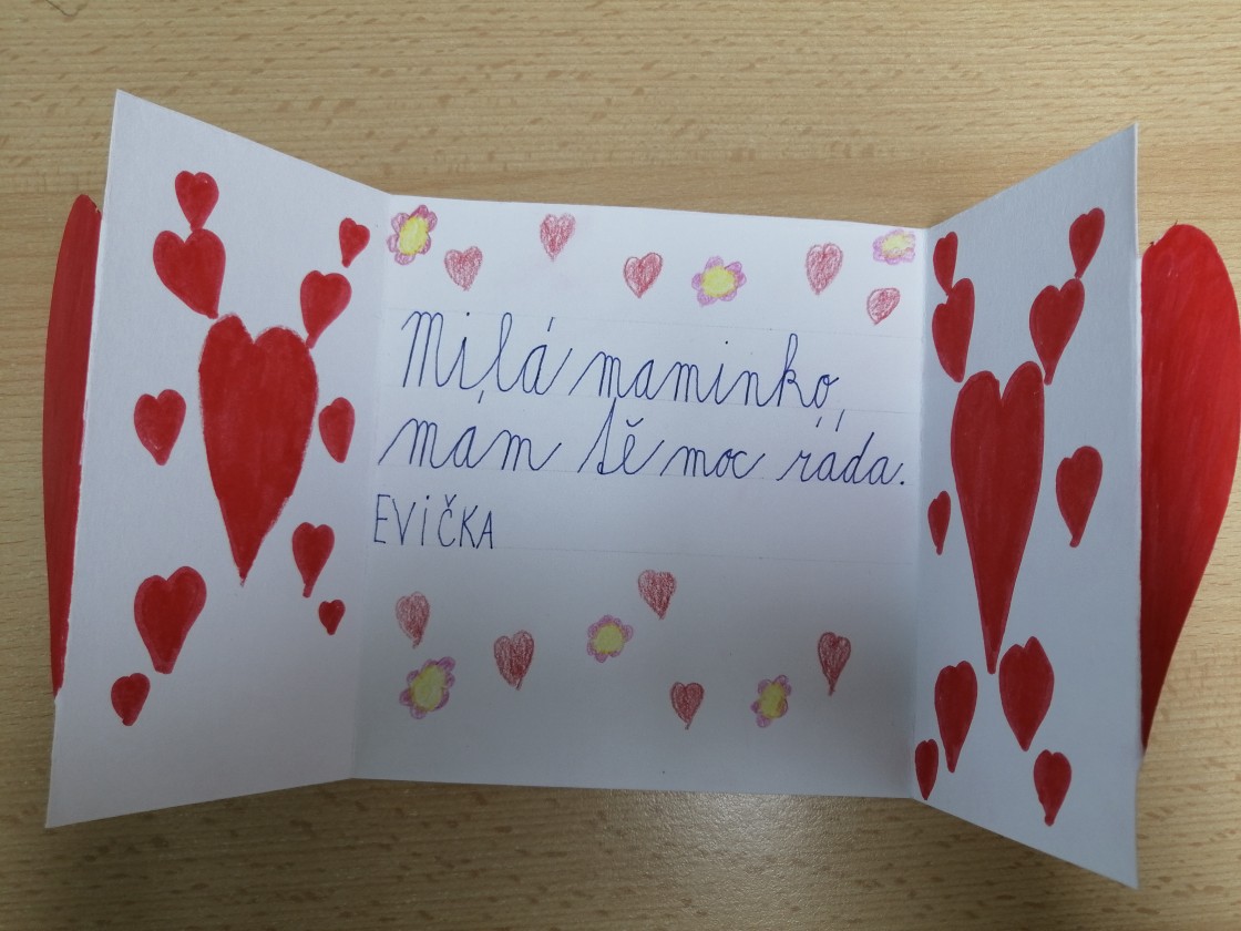 10.5.2021V pátek měla třída 1. B projektový den „Pohádkové jaro“. Námětem bylo jaro, a to ve všech možných podobách. Kdo by poslouchal za dveřmi, tak by slyšel vyprávění, pohádky, písničky, bohatý jarní kvíz s mnohými vědomostními, ale i pohybovými úkoly… A to není vše… Pro naše milé maminky se děti naučily básničku a z lásky vyrobily přáníčko. Školu hrou provázela dobrá nálada, pohoda, veselý smích a kouzelná radost dětí.
