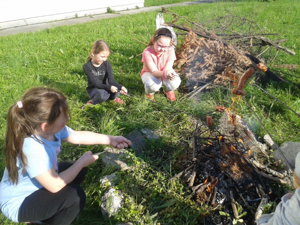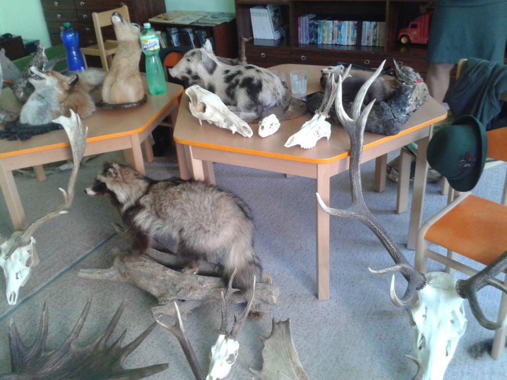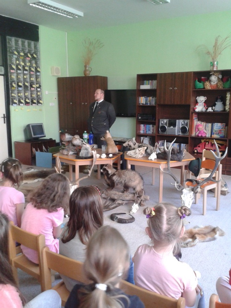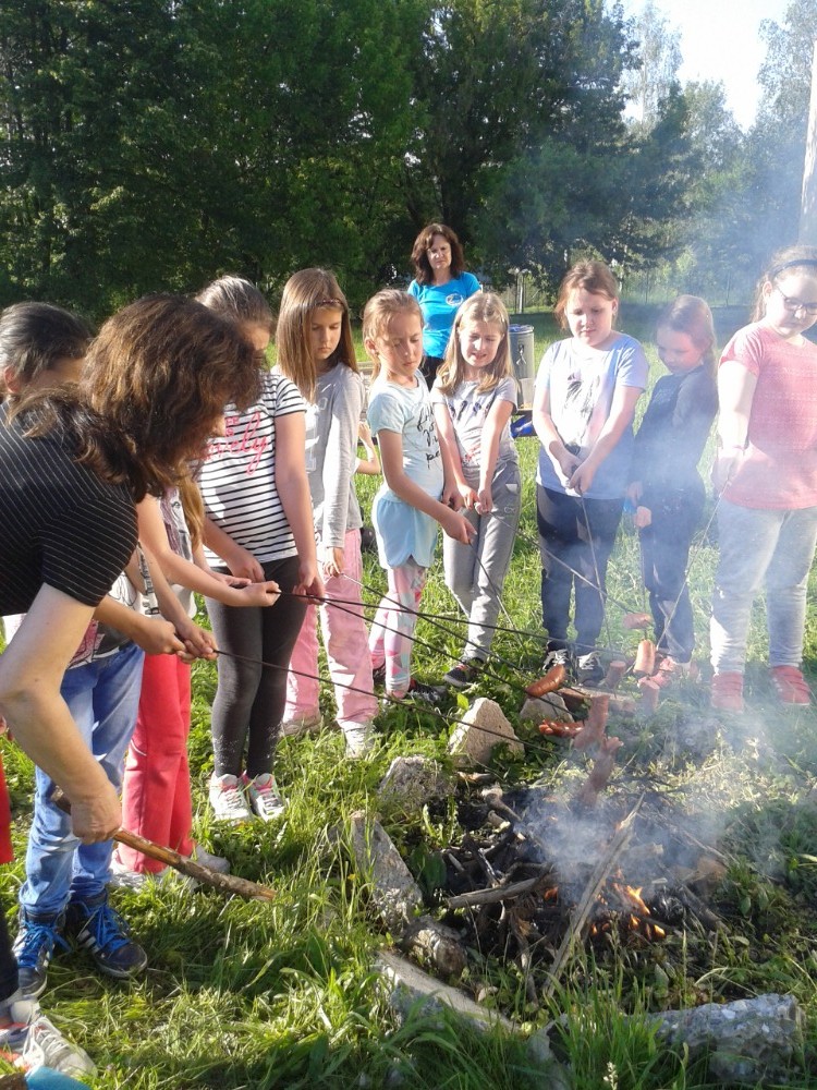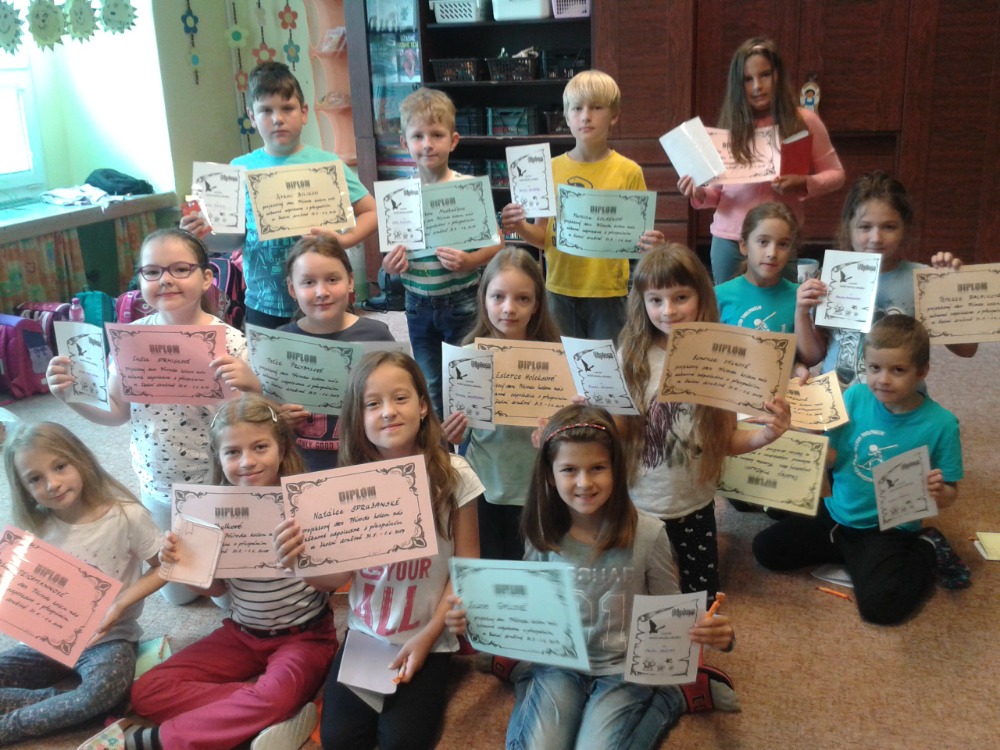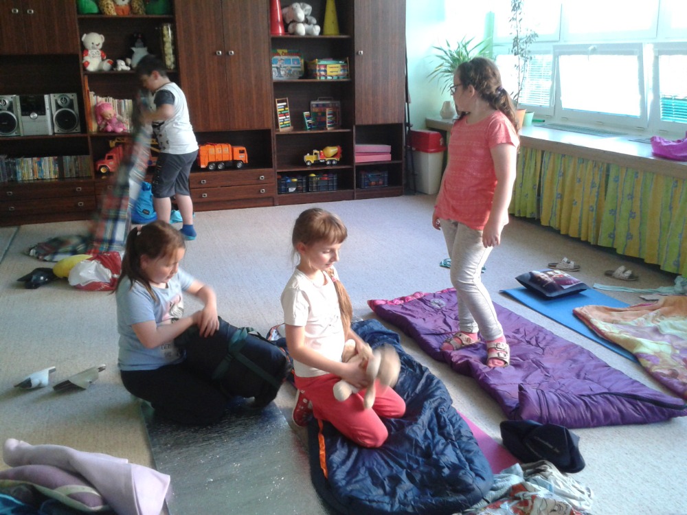 6.6.2019Vše začalo 31.5. besedou s myslivci z Albrechtic. Ti přivezli dětem ukázky mnoha vycpaných zvířat, rohy a parohy, ale největším překvapením byli dva psi, kteří předvedli, jak umí hledat zvěř a také akrobatické cviky. Myslivci pojali besedu interaktivně, děti se zapojovaly velmi rády a nakonec byly pochváleny za své velké znalosti o zvířatech. Byla to moc hezká a poučná akce. Potom se děti přemístily na dvůr, kde hledaly poklad, na Zelené stezce si zopakovaly znalosti o přírodě, soutěžily o nejhezčí obrázek oblíbeného zvířátka, u táboráku si opekly buřty. Po návratu do družiny je čekal slavnostní přípitek a pohádka. Všichni jsme netrpělivě čekali, až se setmí. Pak odvážlivci vyrazili na nejvíc očekávanou i obávanou Stezku odvahy, ze které si přinesli diplom a museli se na určeném místě podepsat. Zážitků bylo plno a ve spacáku si je všichni vzájemně sdíleli. Ale únava byla také velká, takže se brzo všem zavřela očka. Po probuzení čekaly na děti buchty a čaj k snídani a po sbalení svých věcí ještě zhodnocení akce a rozdání diplomů. Některým se domů ani nechtělo, ale všichni byli spokojení. Tak zase za rok … Liběna Greplová