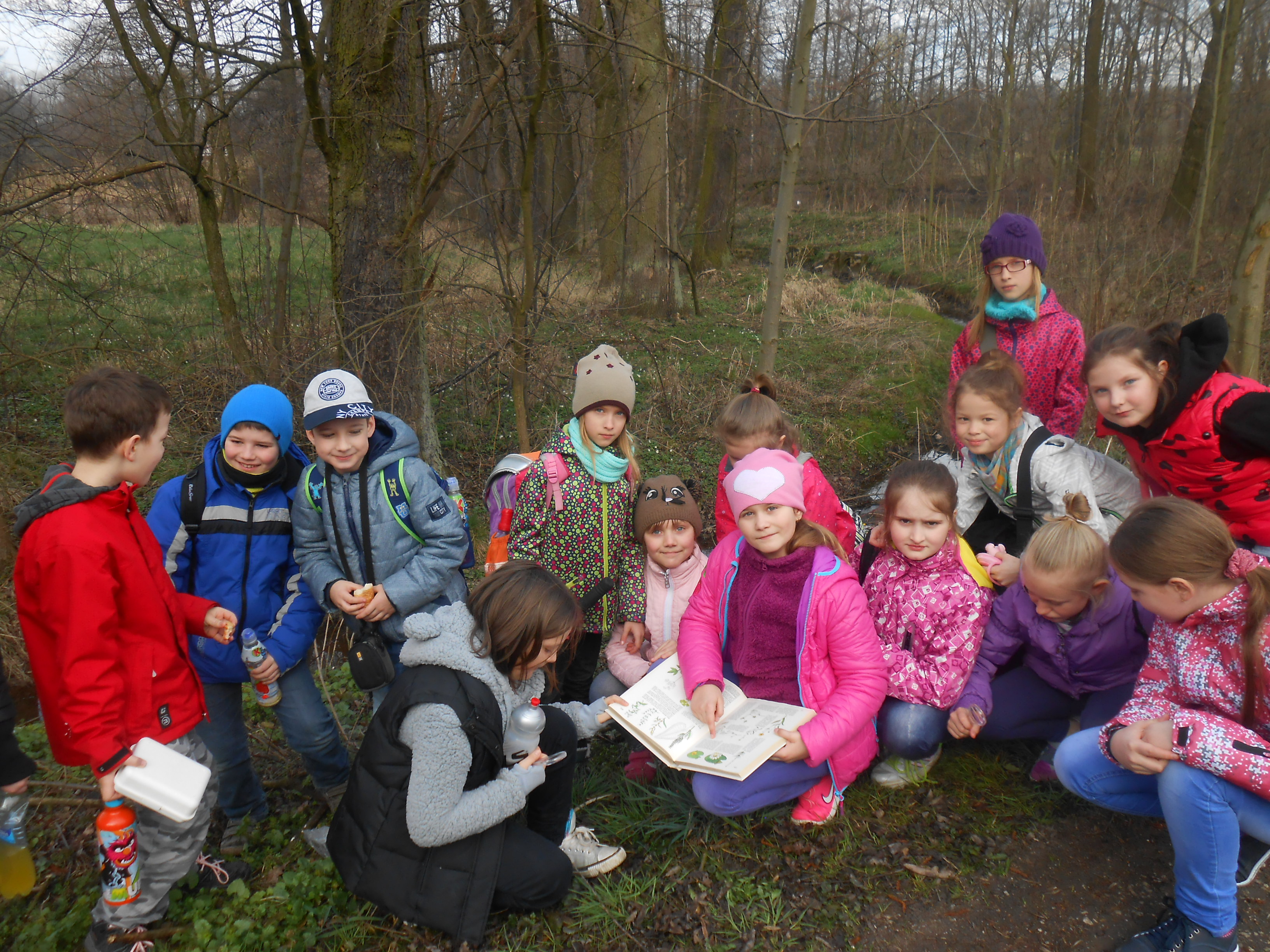 8.4.2016Poslední březnový den bylo krásné počasí, a proto jsme se vydali na přírodovědnou procházku. Nejprve jsme zamířili do lesa vedle školy. Tam jsme poslouchali zpěv ptáků a zkoušeli uhodnout jejich jména. Hned jsme poznali strakapouda, který ťukal do kůry stromu. Mezi větvemi poskakovaly veverky. Naše cesta pokračovala k rybníkům. Dalekohledem jsme pozorovali, co se děje v jejich okolí. Na druhém břehu jsme viděli spoustu žlutého podbělu a divoké kachny. Popošli jsme kousek dál a objevili potok, u kterého rostly sasanky i orseje, jejichž květy jsme zkoumali lupou. Při zpáteční cestě jsme si prohlédli ovce, kozy i koně. Na procházce se nám moc líbilo a viděli jsme mnoho zvířat i rostlin, o kterých se učíme. Doufáme, že se brzy vydáme na další pozorování do přírody.