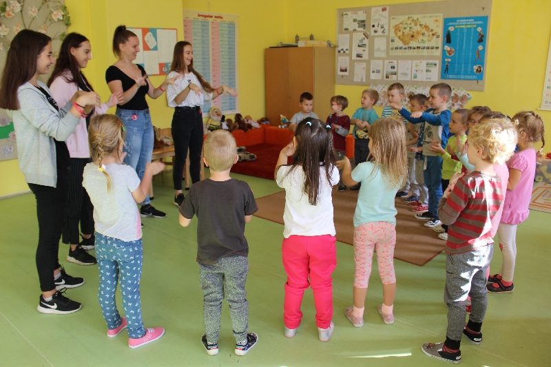 Děvčata si vyzkoušela, že ukočírovat plnou třídu malých dětí je dřina 🙂