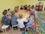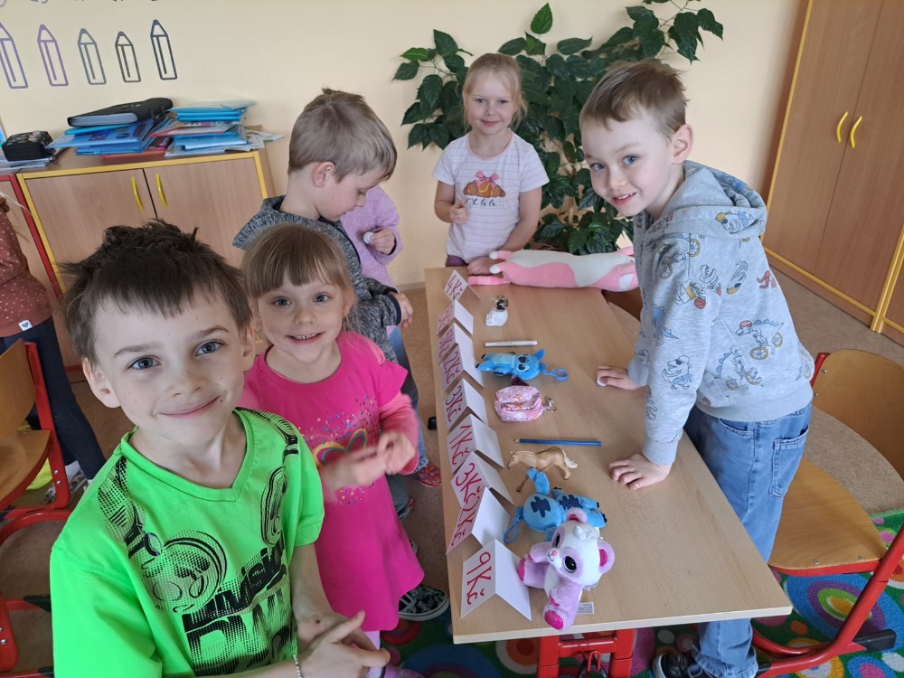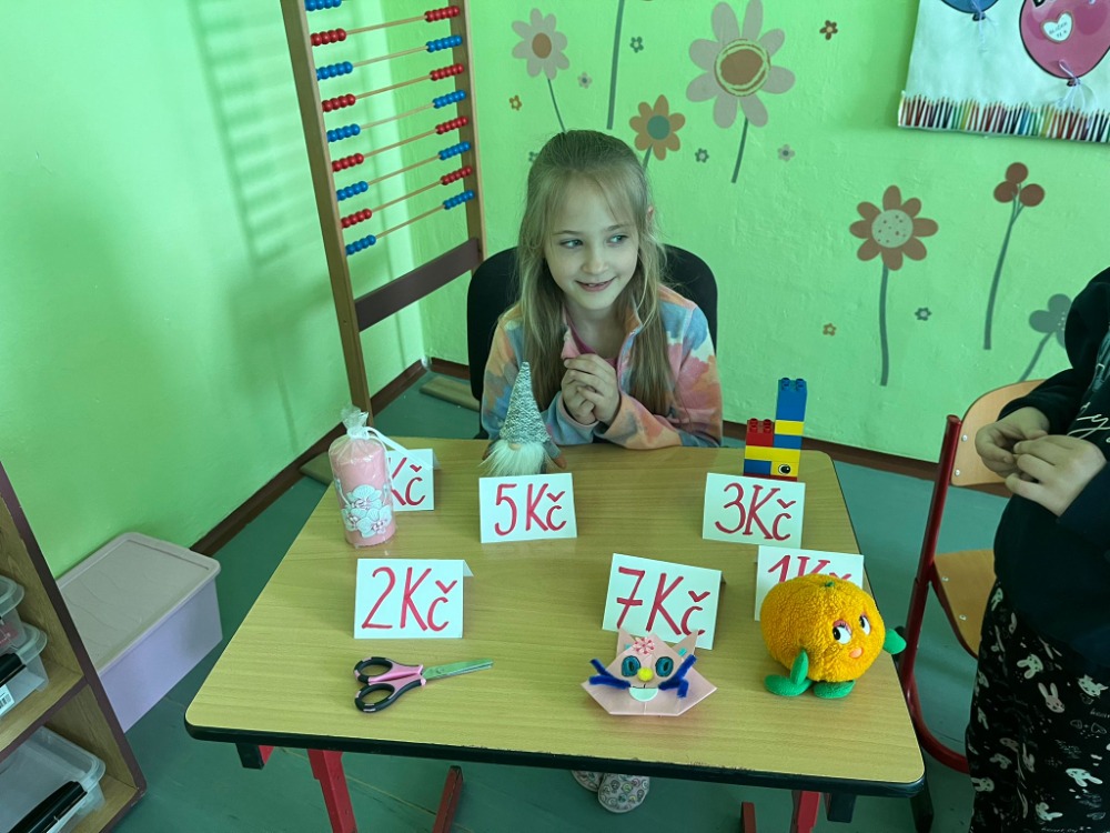 Děti si samy připravily „zboží“ – přinesly si drobné hračky, ke kterým jsme přiřadili cenovky, a tak ve třídě vznikl malý obchod, kde se děti střídaly v rolích prodávajících a zákazníků.