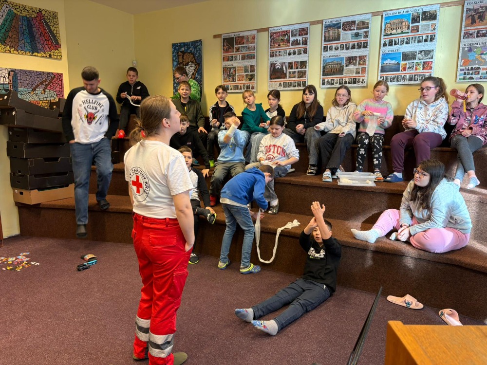 13.2.2026Dne 13. února proběhla v třídě 5. A odborná přednáška zaměřená na základy první pomoci. Mezi žáky zavítala paní Zuzana, zdravotnice Českého červeného kříže, aby dětem předala důležité znalosti o záchraně lidského života.