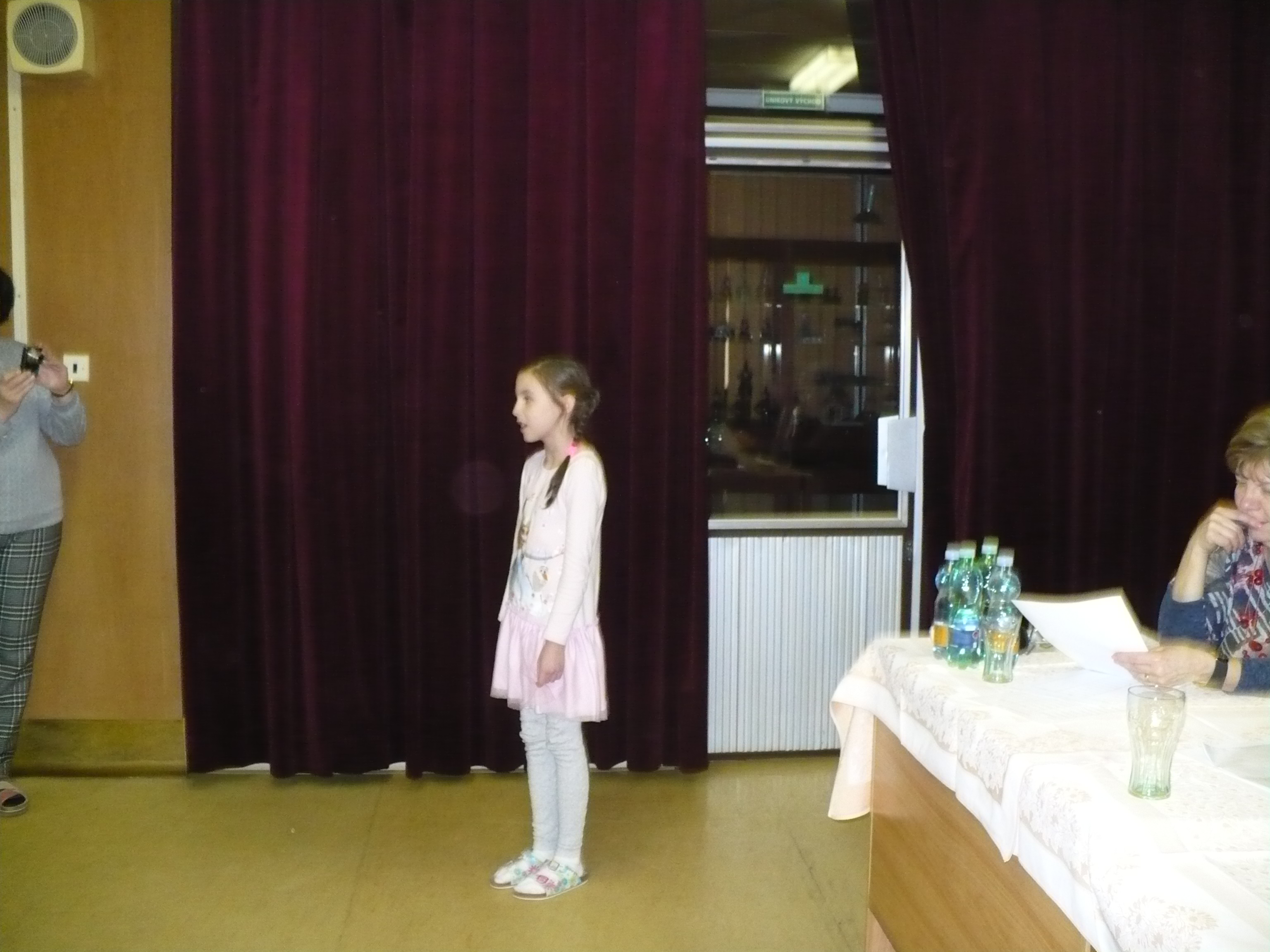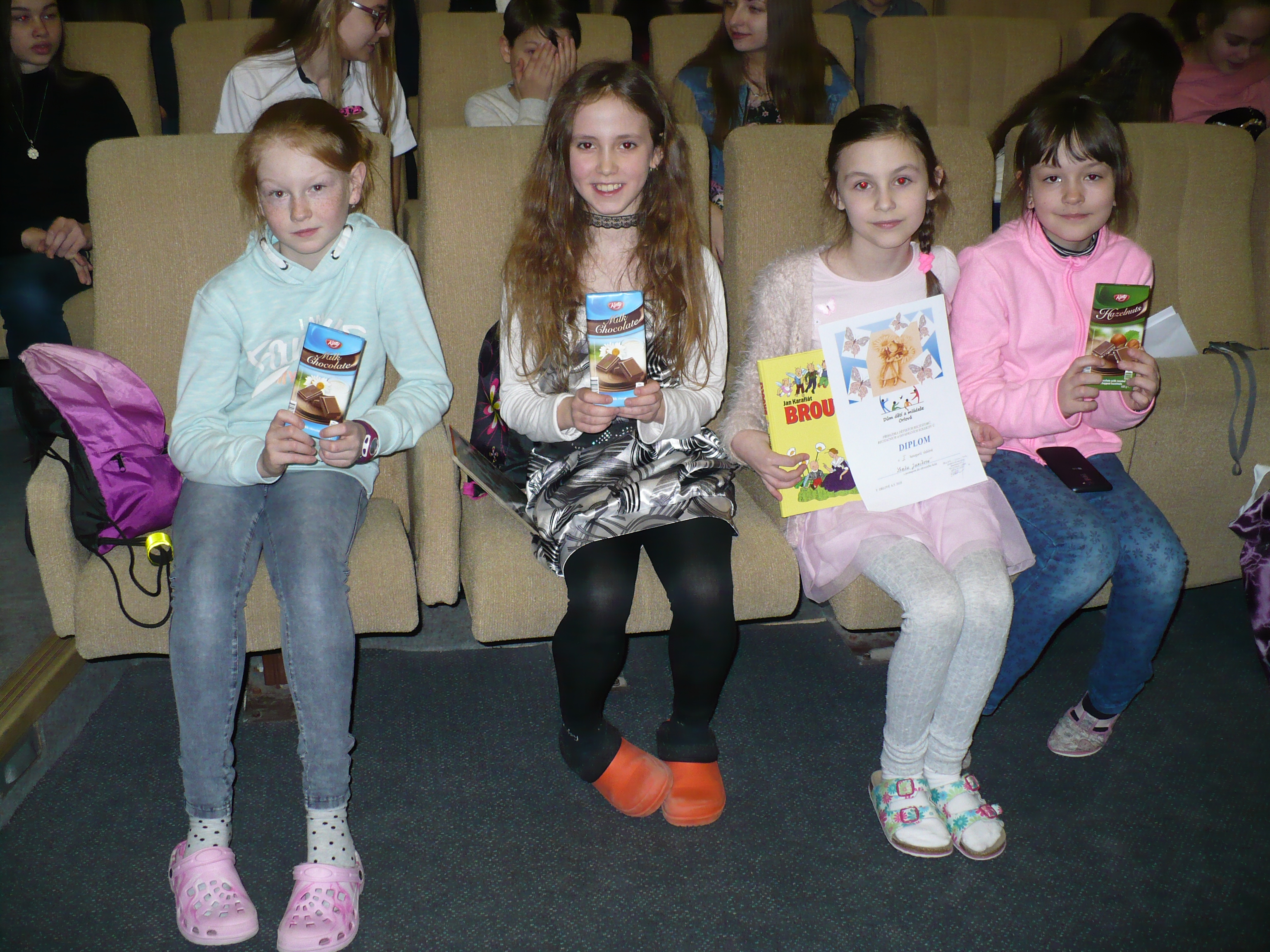 7.3.2018V úterý 6. 3. 2018 se konala přehlídka recitátorů v DDM Orlová. Za 1.kategorii se jí zúčastnilo 11 dětí, z naší školy byla dvě děvčata – Lenka Janíková ze 3.A a Věrka Lišková ze 3.B. Básně všech účastníků byly vtipné, milé a děti se hodně snažily. Někteří měli velikou trému, jiní zase byli odvážní a šikovní a k nim patřila i vítězka za 1.kategorii naše Lenka Janíková s básní Na výletě v divném světě od J. Havla. Na 2.místě byla Marie Tokárová ze ZŠ Doubrava. Oběma dívkám gratulujeme a přejeme jim hodně štěstíčka v okresním kole, které se koná v dubnu v Havířově.