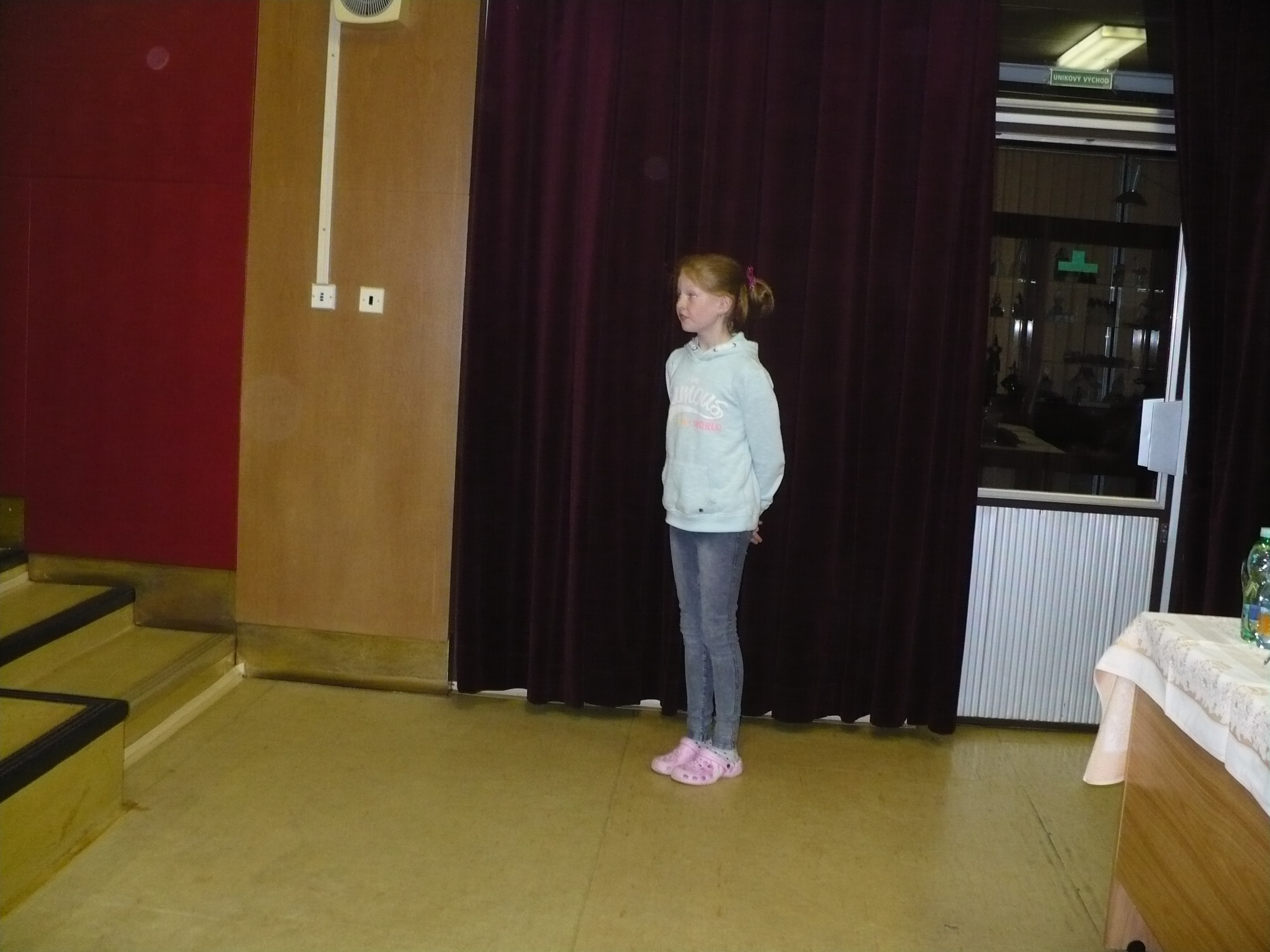 Recitační soutěž reprezentovaly z naší školy také dvě žákyně ze 2.stupně. Adéla Římanková ze 7.B a Zuzana Kalinová z 8.B. Zuzka obsadila 1.místo a postoupila do okresního kola. Moc gratulujeme a budeme fandit, ať uspěje co nejlépe.