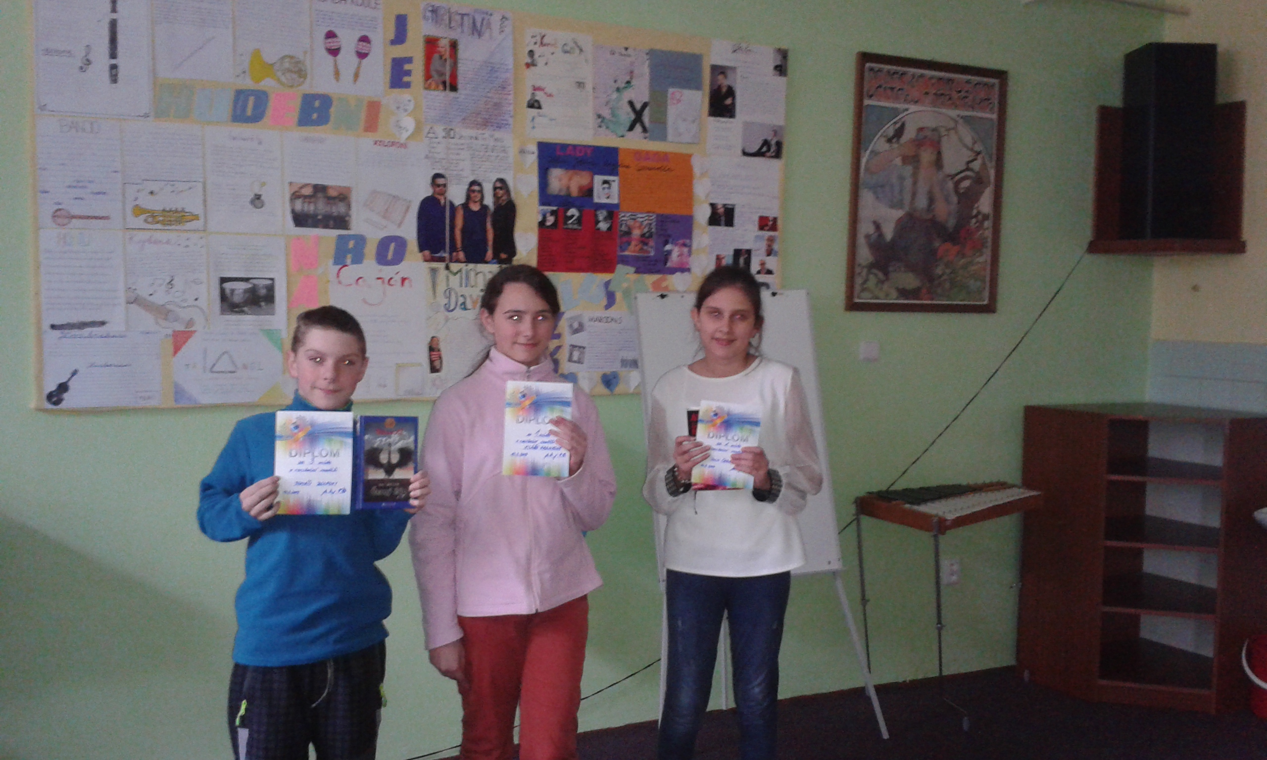 Nejúspěšnější recitátoři byli odměněni nejen potleskem publika, ale také diplomem a pěknou knížkou. 1. místo obsadila Klára Franková ze 7. B, na 2. místě se umístila Julie Černeková ze 6. A a 3. místo obsadil Tomáš Bolf ze 7. A.