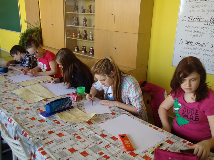 Skupina vybraných žáků se pod vedením paní učitelky Ulmanové a Václavíkové zúčastnili výtvarné soutěže v DDM Orlová. Z vyhlášených témat zaujal především Ekofór : s humorem na přírodu a také téma Děti chrání planetu Zemi. V příjemné přátelské atmosféře se soutěžící dali do práce.