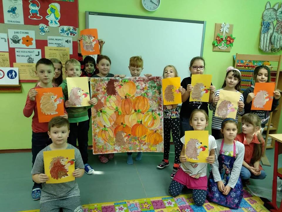 Nezáleží na tom, kolik nám je let, vůbec nevadí, že jsme teprve druháci, protože i my umíme perfektně spolupracovat ve výtvarné výchově a pracovních činnostech. Posuďte sami podle fotografií. Společně jsme vytvořili toto dílo, kterým se loučíme s podzimem.