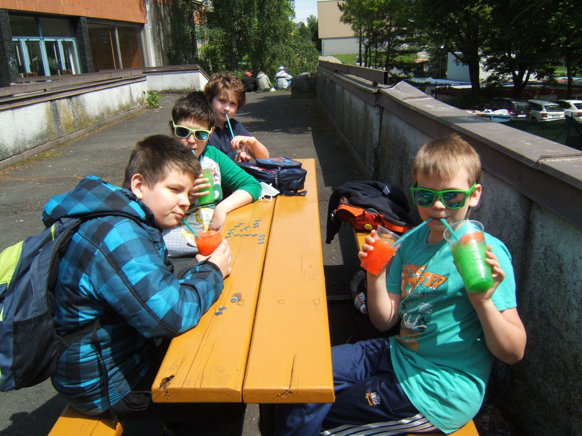 Celé dopoledne jsme ukončili na školním hřišti, kde si ještě chlapci zahráli kopanou a ti ostatní je sledovali nebo odpočívali na lavičkách.